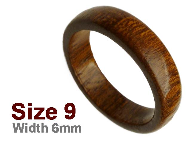 (Size 9) 6mm Flat Curved Top Koa Wood Carved Ring, MOQ-3