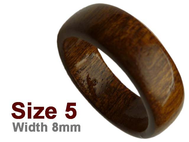 (Size 5) 8mm Flat Curved Top Koa Wood Carved Ring, MOQ-3