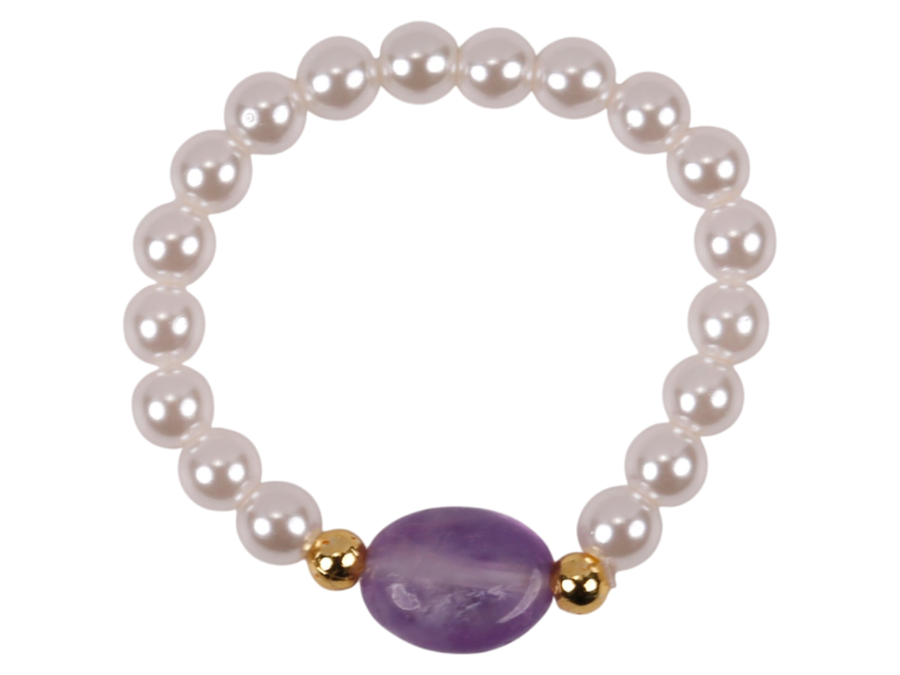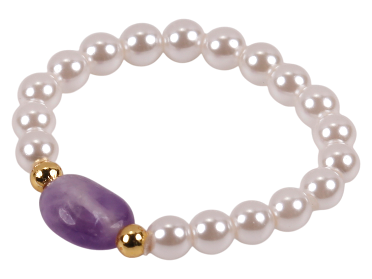 Stretchable White Fresh Water Pearl Ring w/ a Irregular Shape Amethyst, MOQ-6/bag