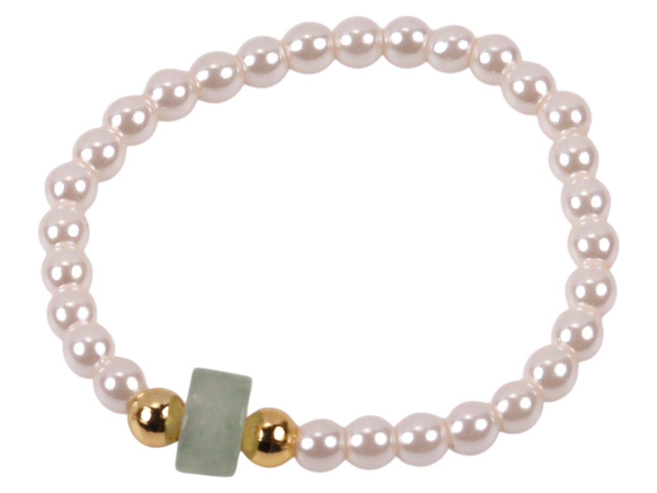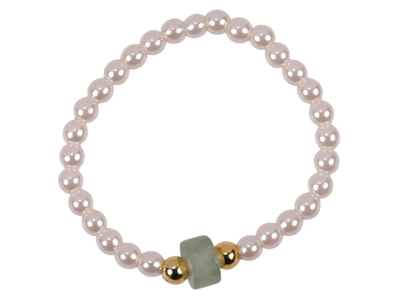 Stretchable White Fresh Water Pearl Ring w/ a Jade Donut Bead, MOQ-6/bag