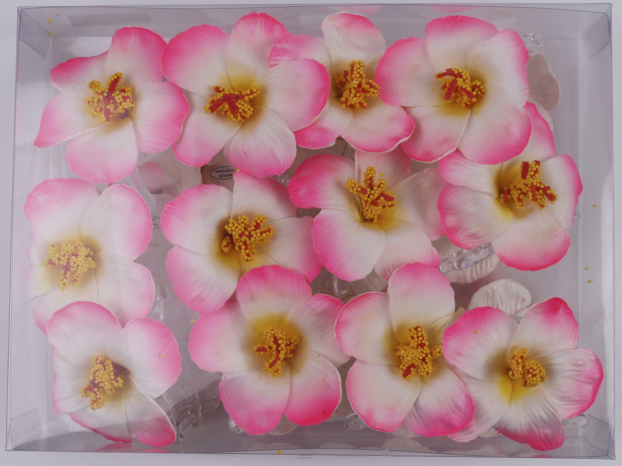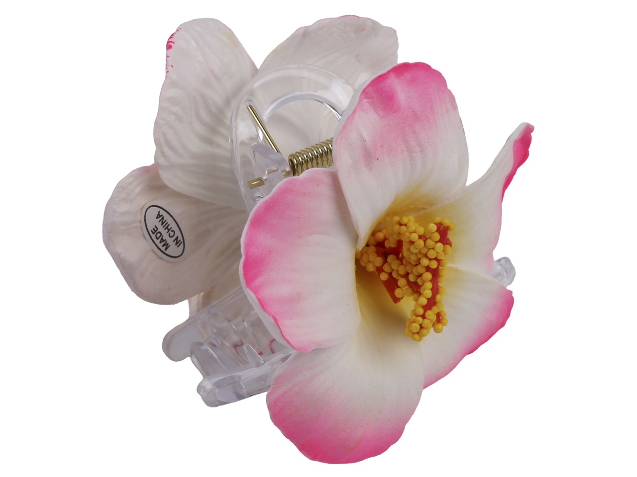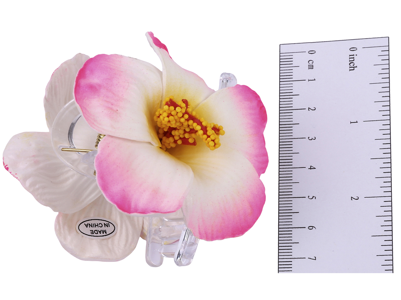 8cm Double Side Pink Foam Hibiscus Flowers Claw Hair Clip, MOQ-12/bx