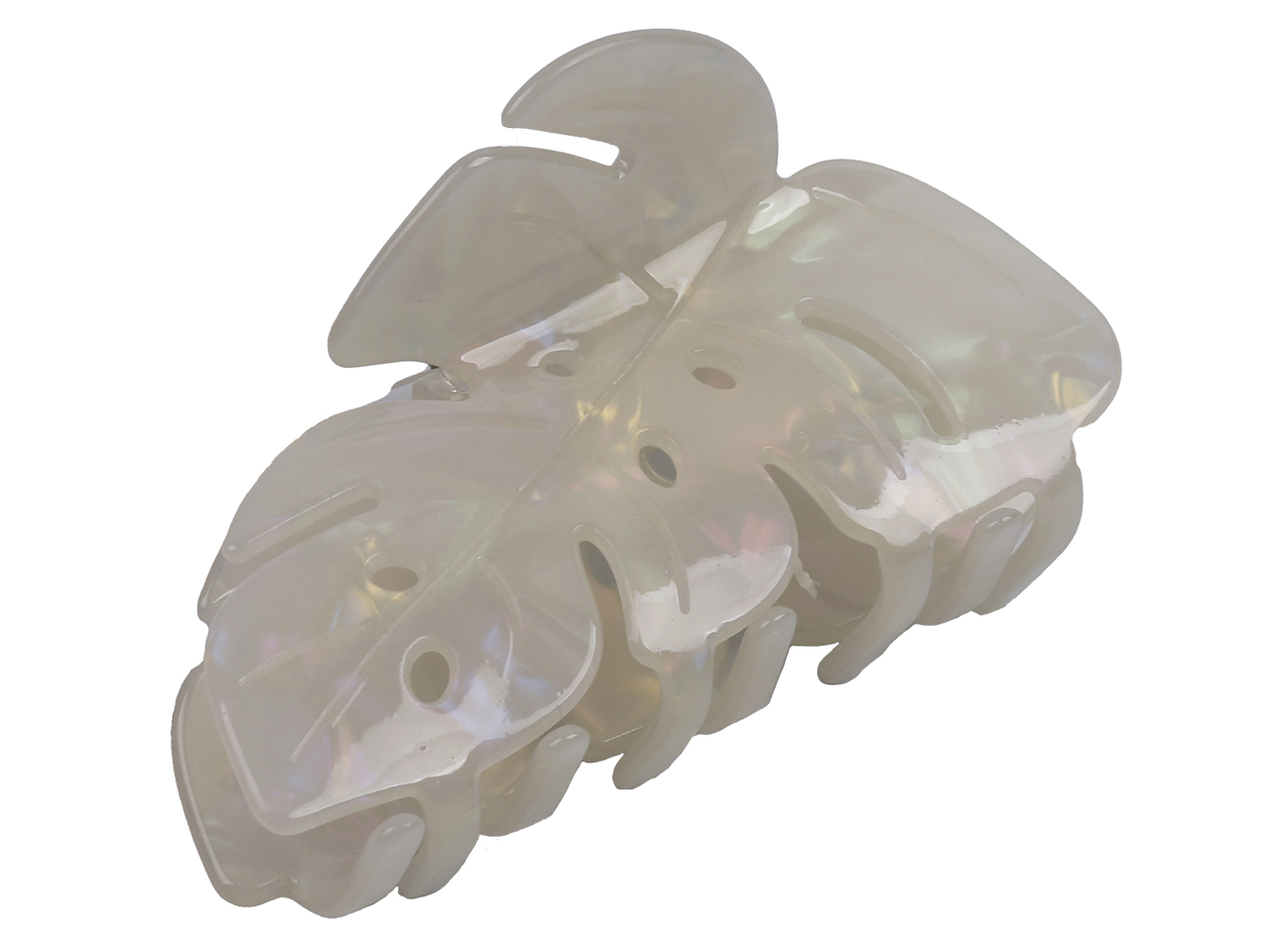 White Monstera Leaf Faux Shell Hair Clip, MOQ-6