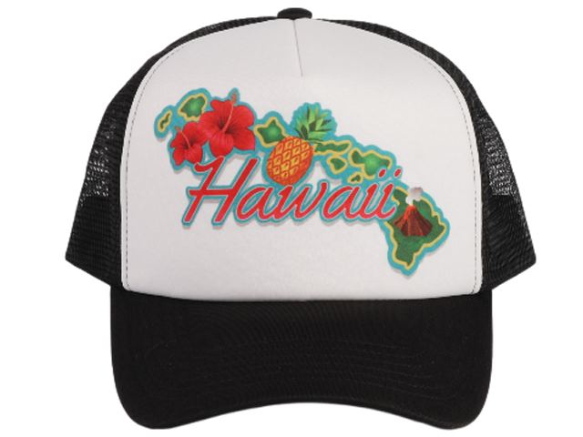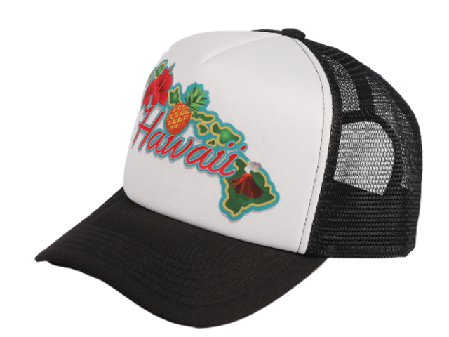 “Hawaii” Island Map Color Printed Black Mesh Baseball Cap