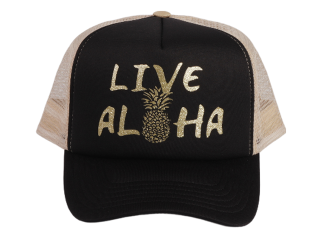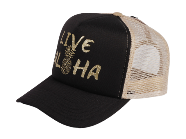 “Live Hawaii” Pineapple Gold Print Biege Mesh Baseball Cap