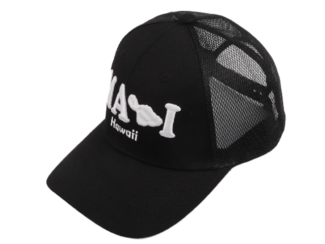 “Maui, Hawaii” Island Map Embroidered Black Mesh Cotton Cap