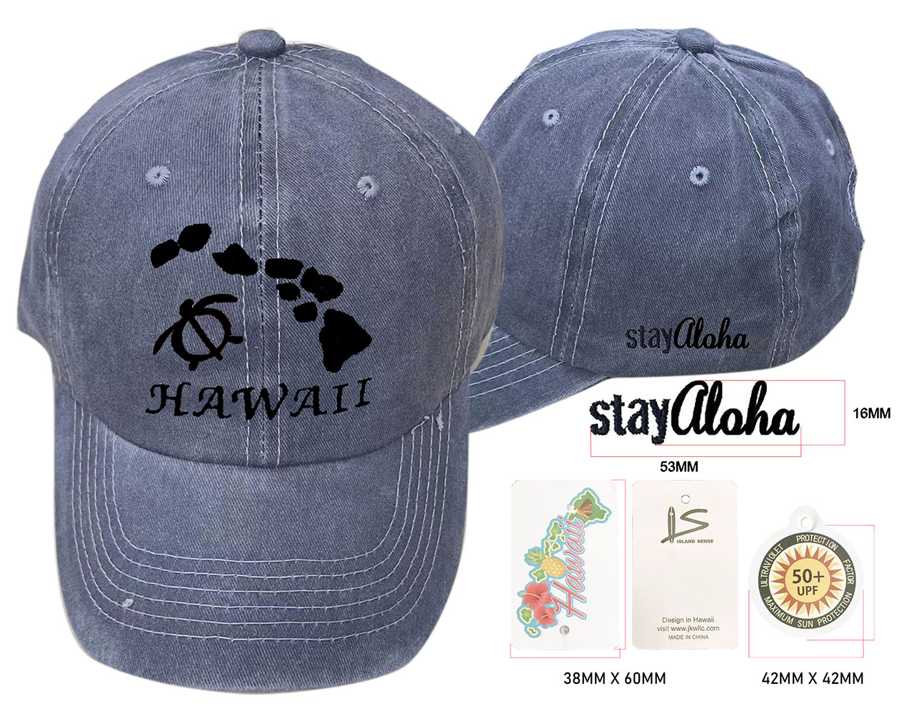 Hawaii Map & Turtle-Stay Aloha, Grey Cotton Cap, 6pcs/bag
