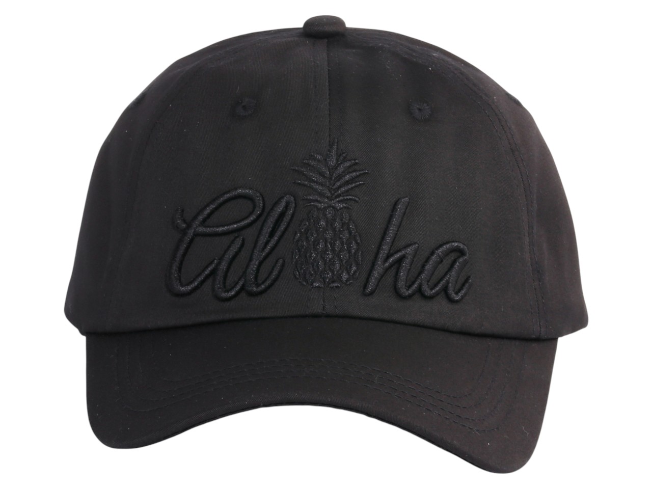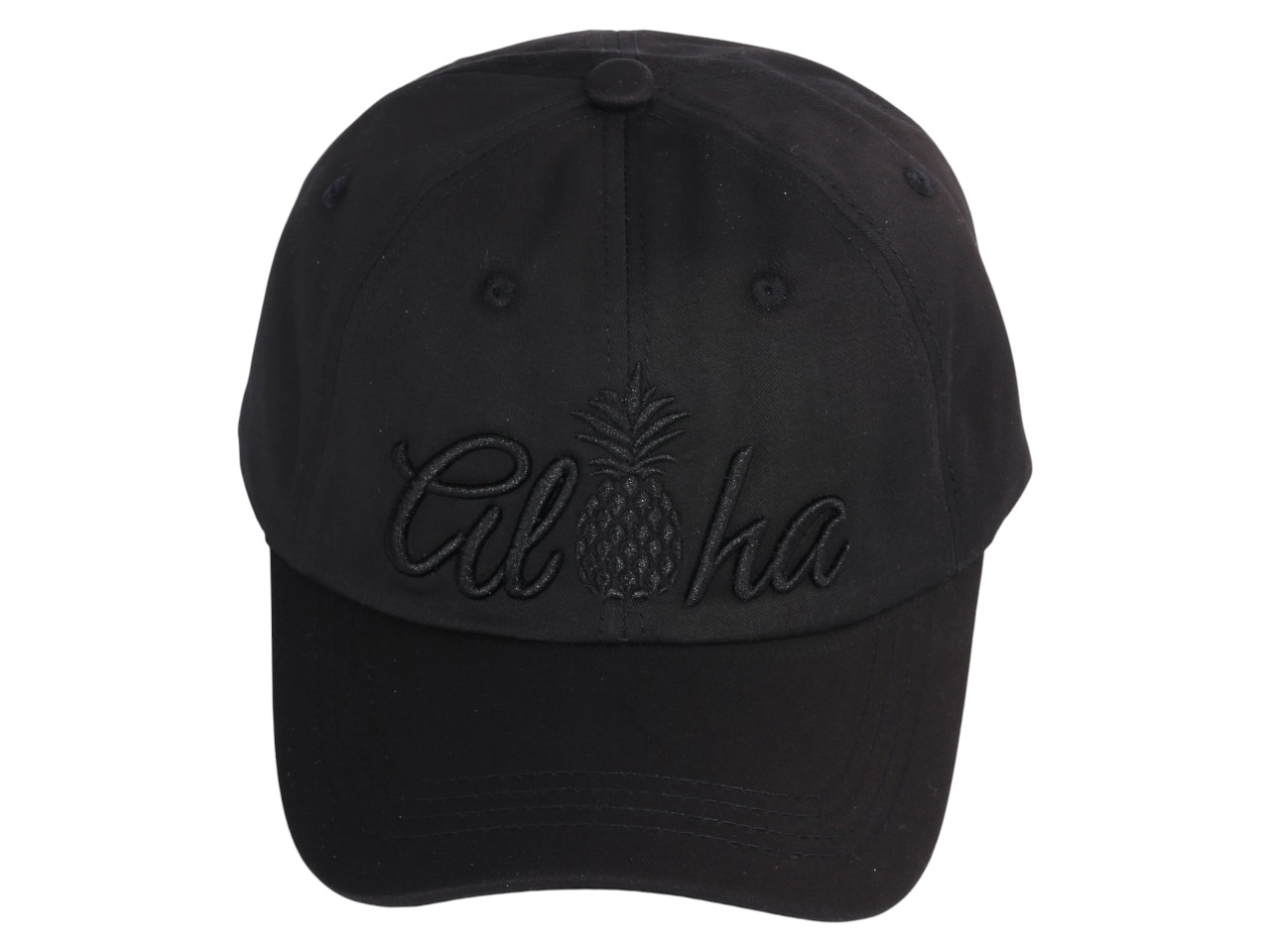 Black “Aloha” Pineapple Embroidered Premium Cotton Cap, MOQ-6