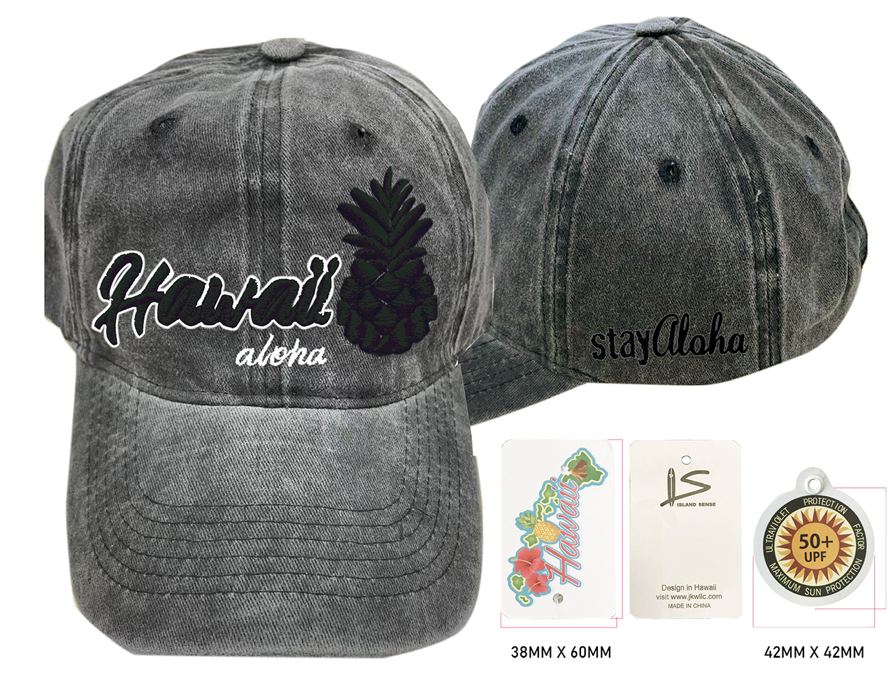 Hawaii Pineapple Aloha-Stay Aloha, Charcoal Cotton Cap, 6pcs/bag
