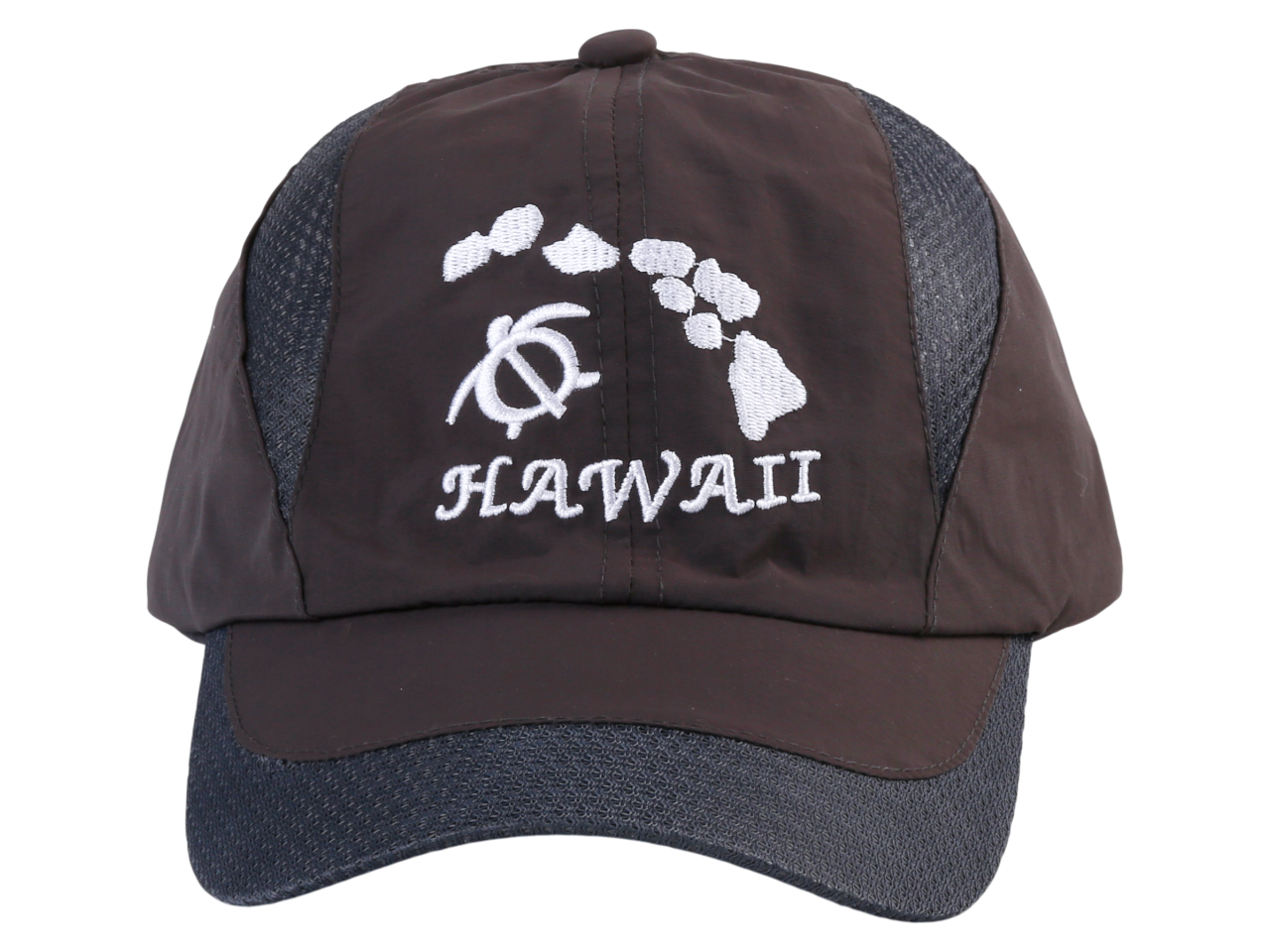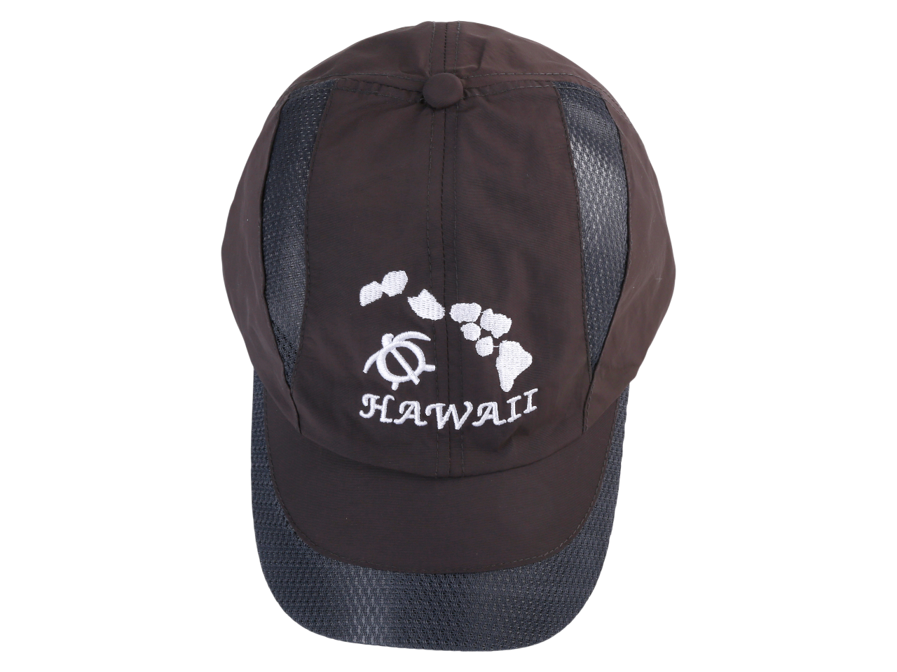 “Hawaii” Island Map & Turtle Embroidered Brown Mesh Breathable Baseball Cap, MOQ-6/pk