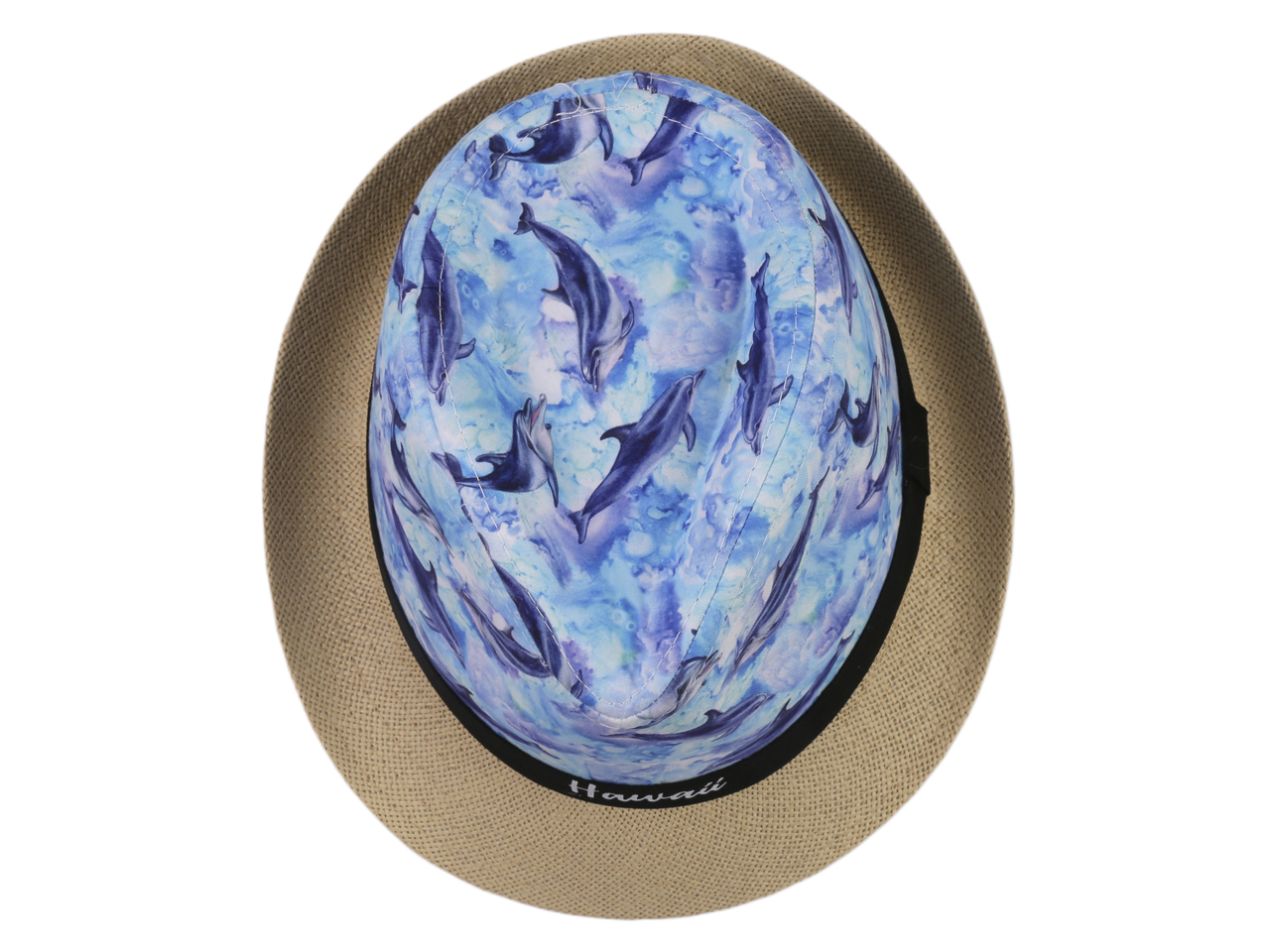 “Hawaii” Dolphin Print Unisex Straw Trilby Hat, MOQ-6/pk