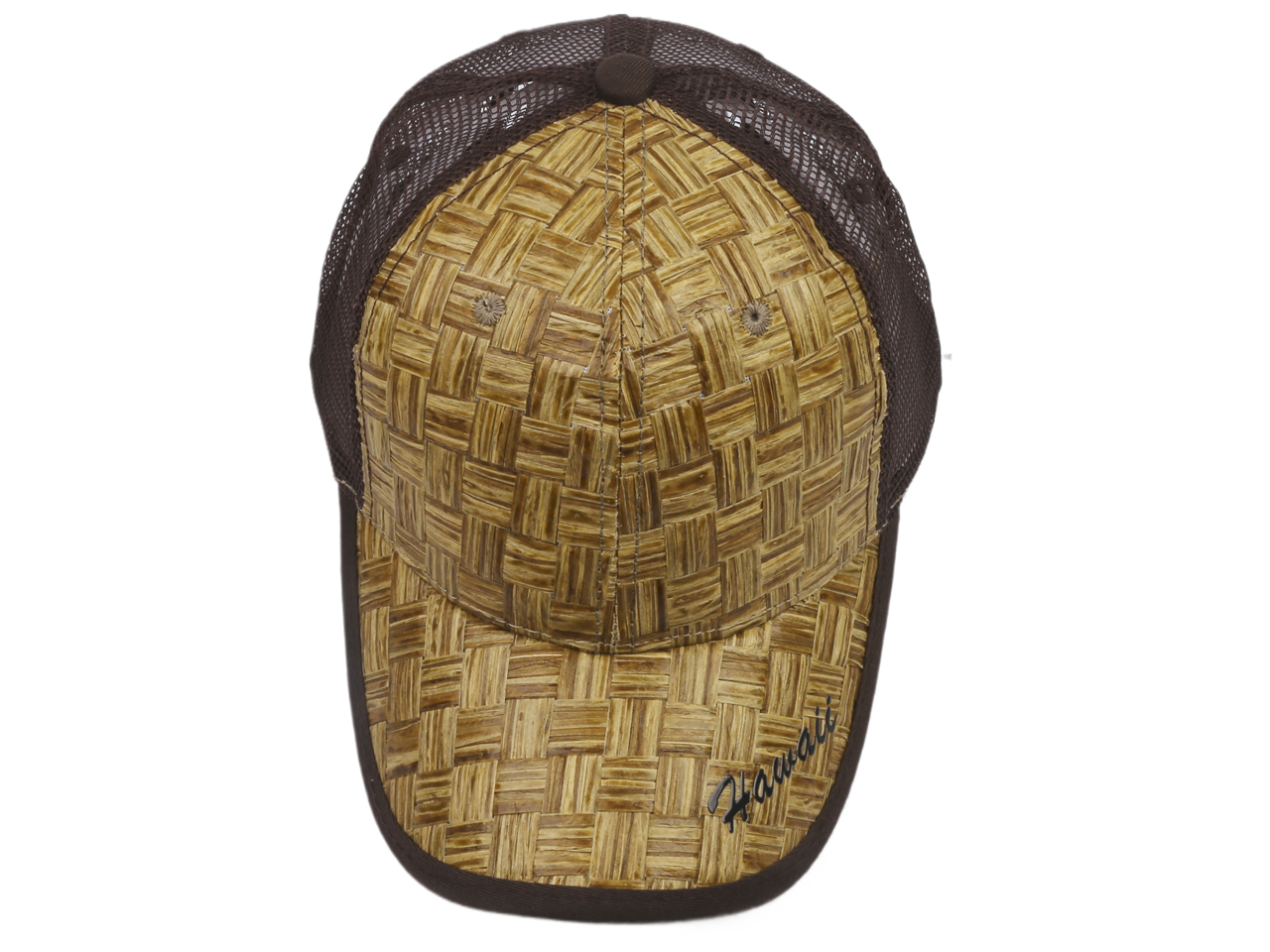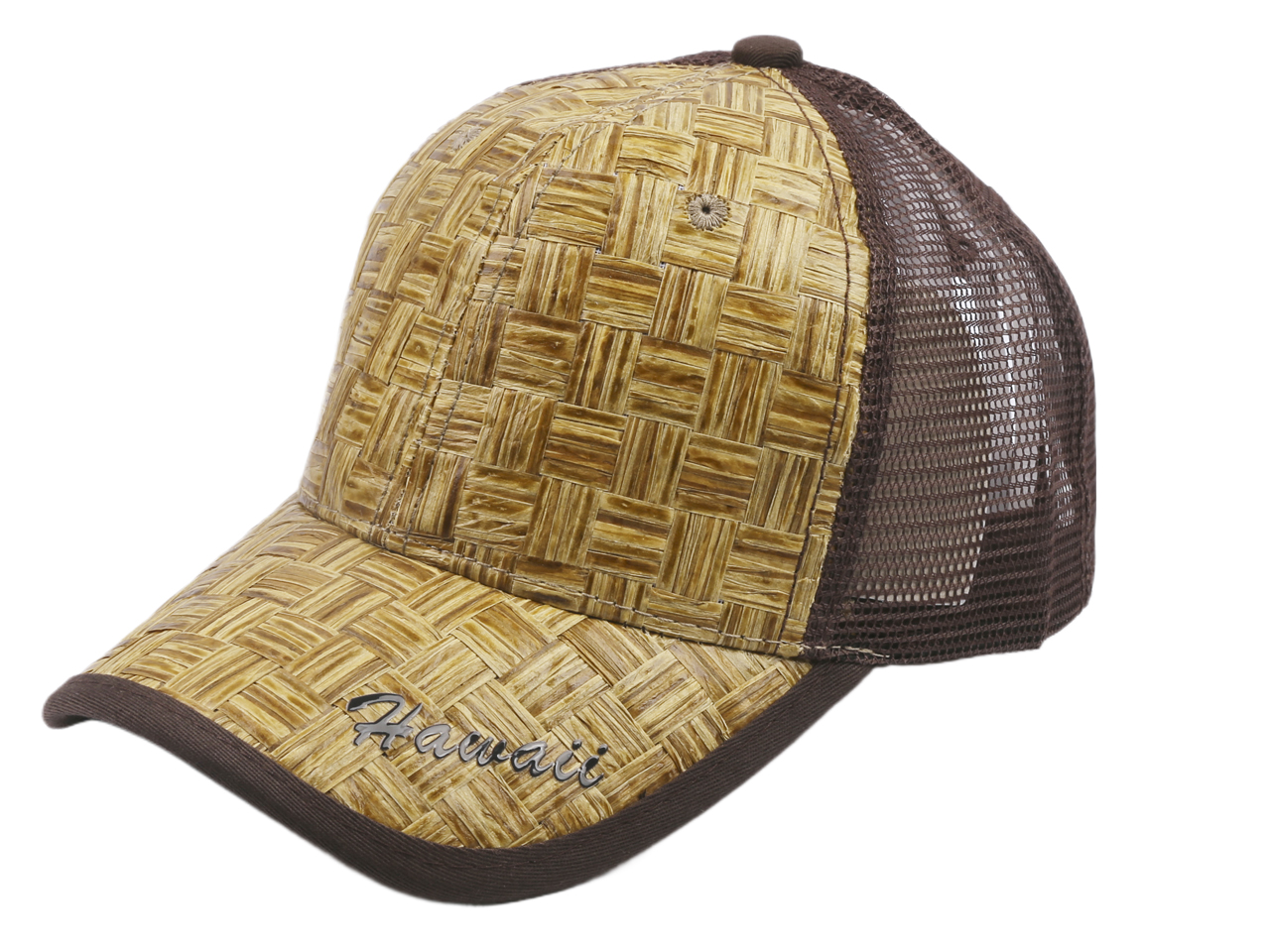 “Hawaii” Natural Straw Weaved w/ Brown Mesh Baseball Cap / Hat, MOQ-6