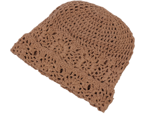 Khaki Knitted Crochet Cloche Hat, MOQ-6/pk