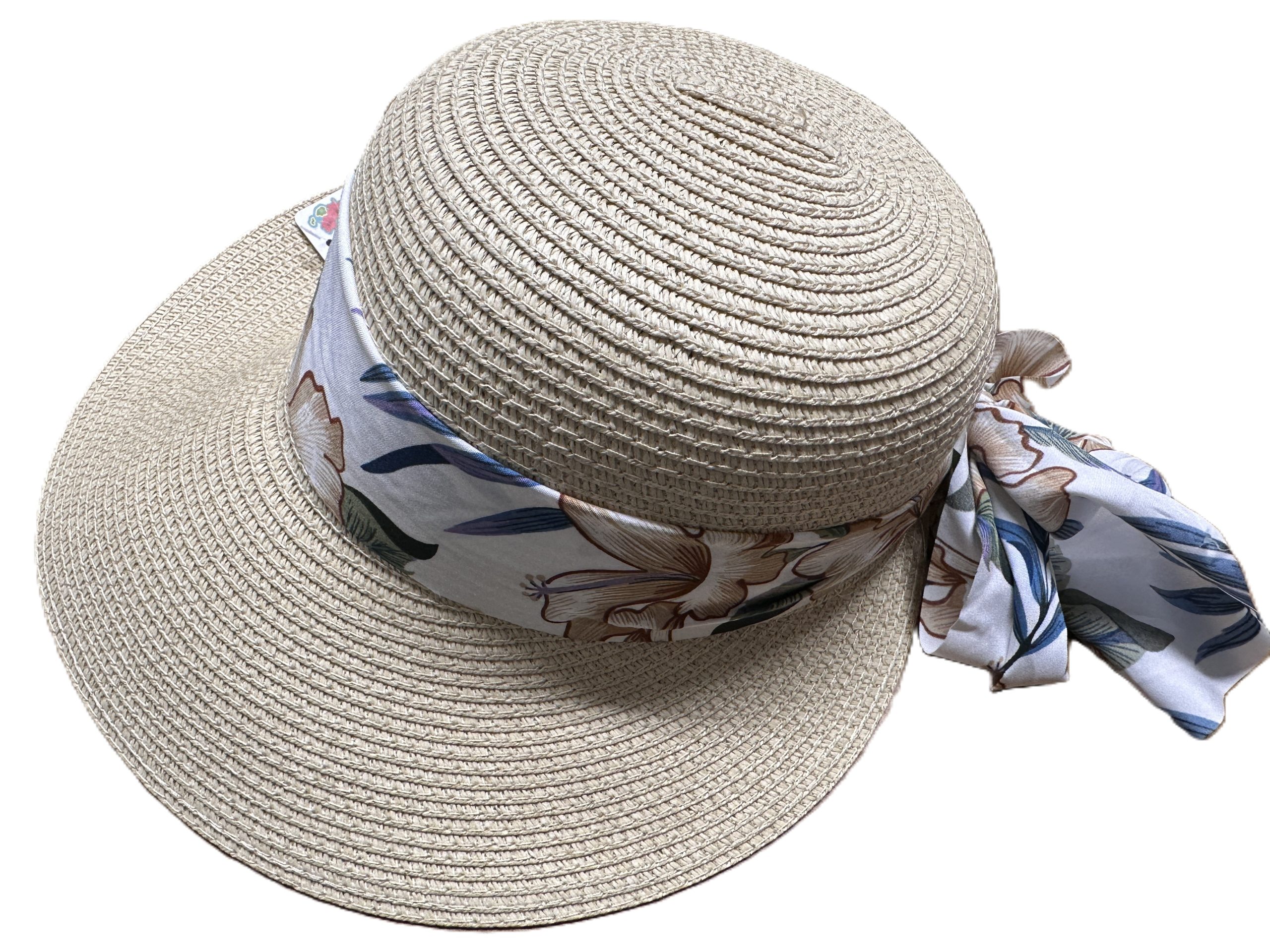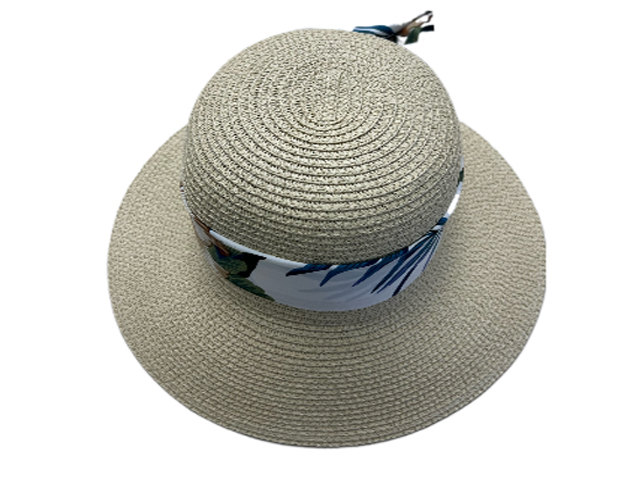 Leaf Band Bow on Khaki Straw Cloche Hat, MOQ-4/pk