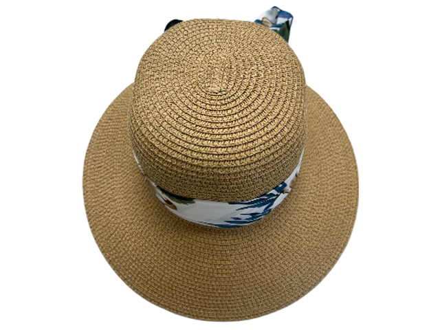Leaf Band Bow on Natural Straw Cloche Hat, MOQ-4/pk