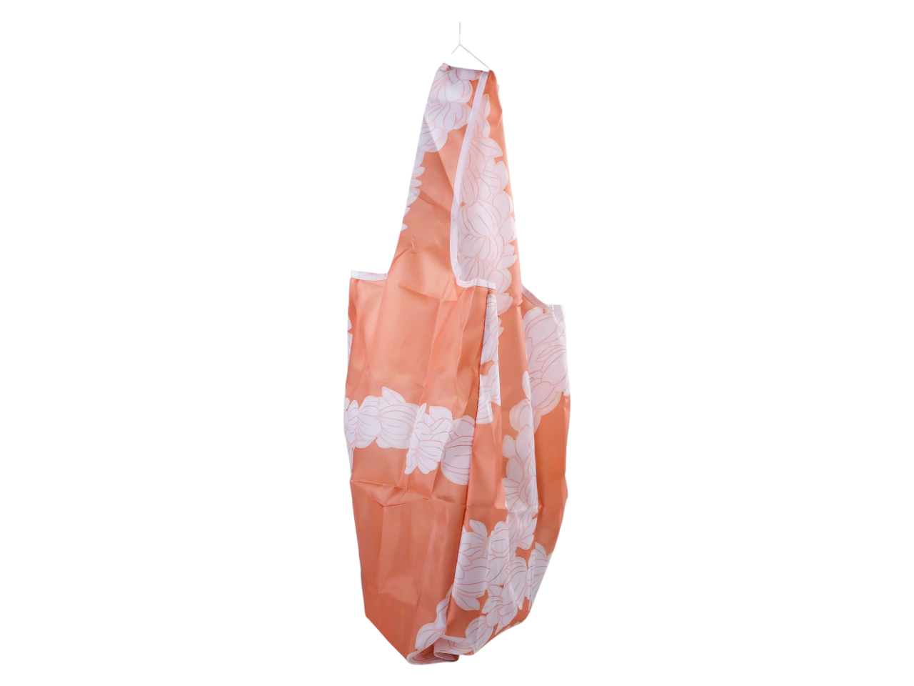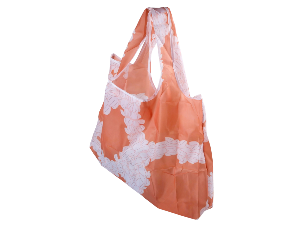 Orange & White Pikake Print Reusable Bag 68x58cm-Foldable Into Pouch, MOQ-6