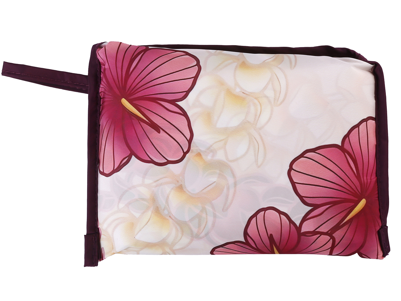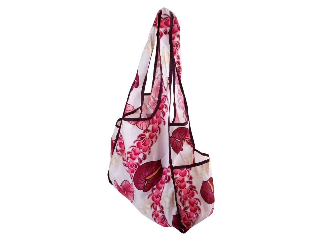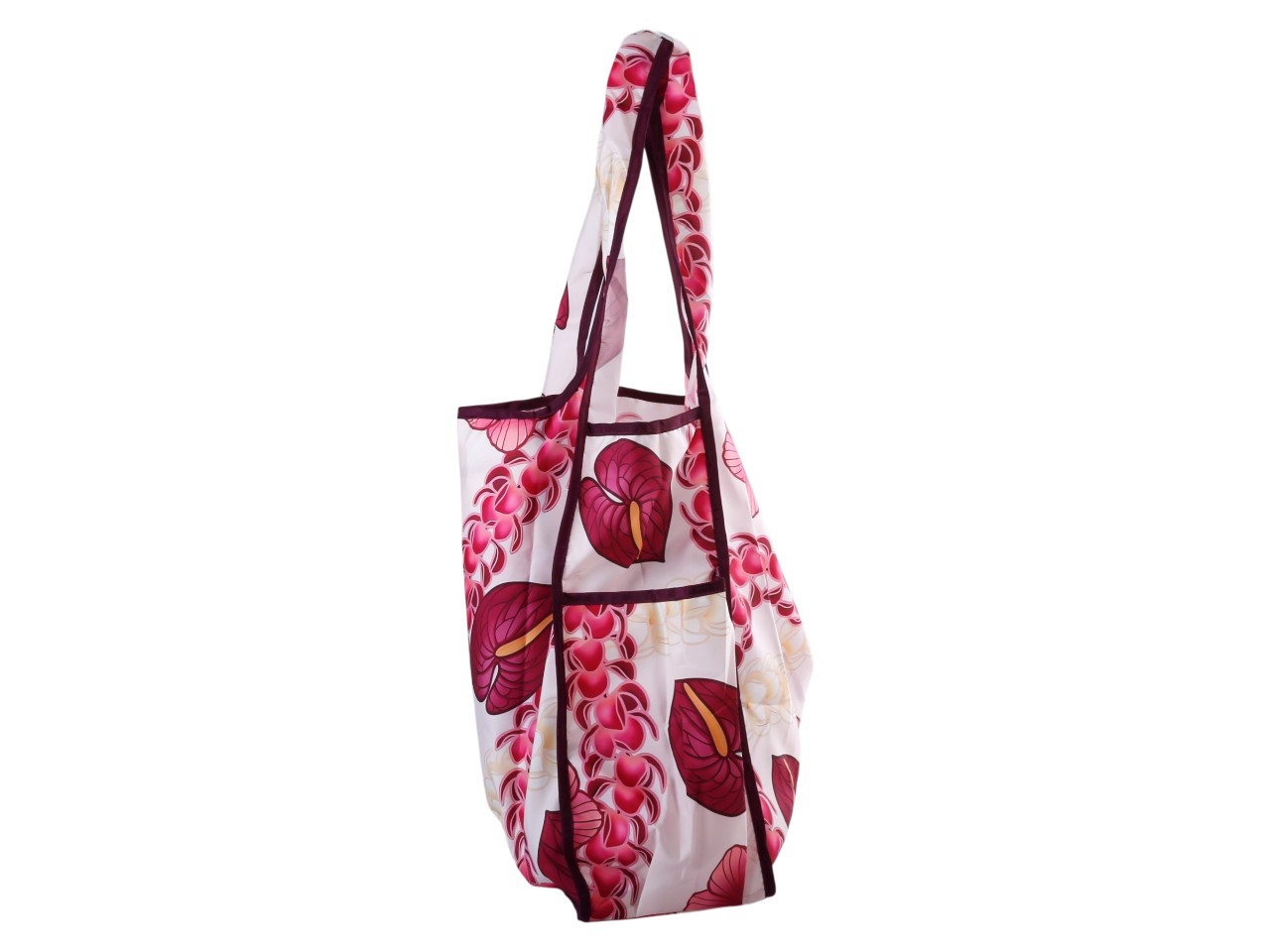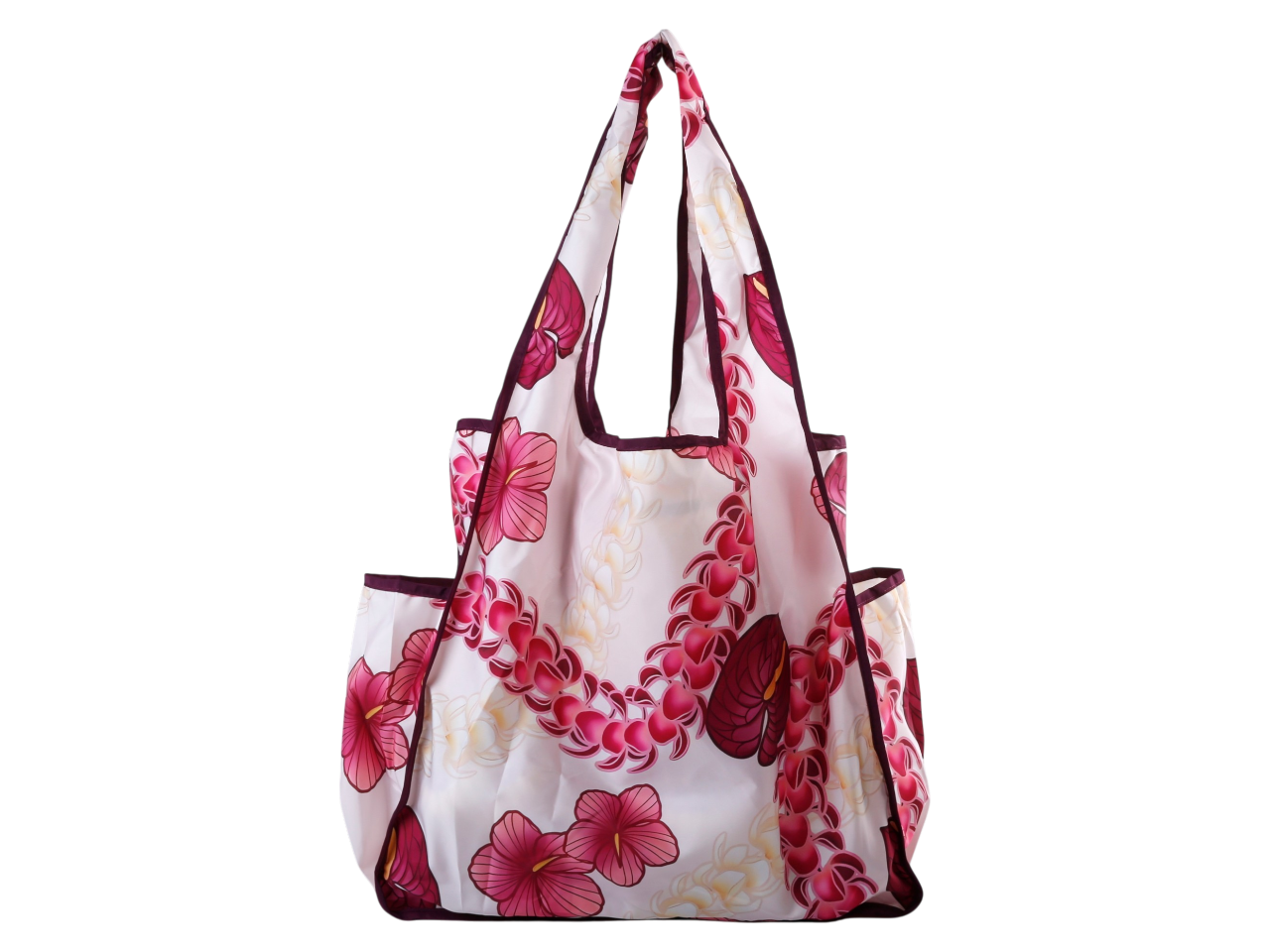 White & Pink Pikake White Background Print Double Pocket Bag Foldable Into Pouch 37x39cm, MOQ-6