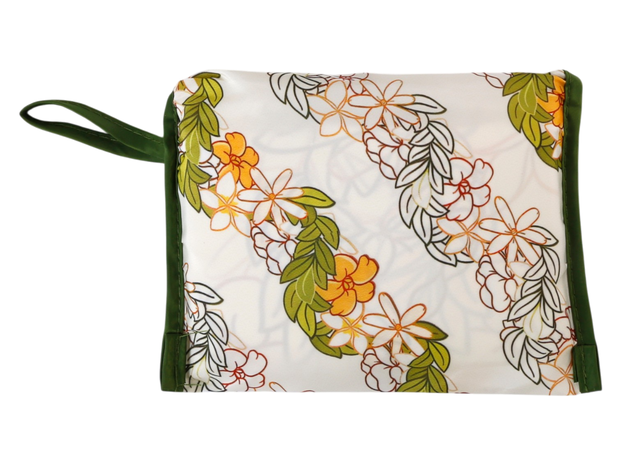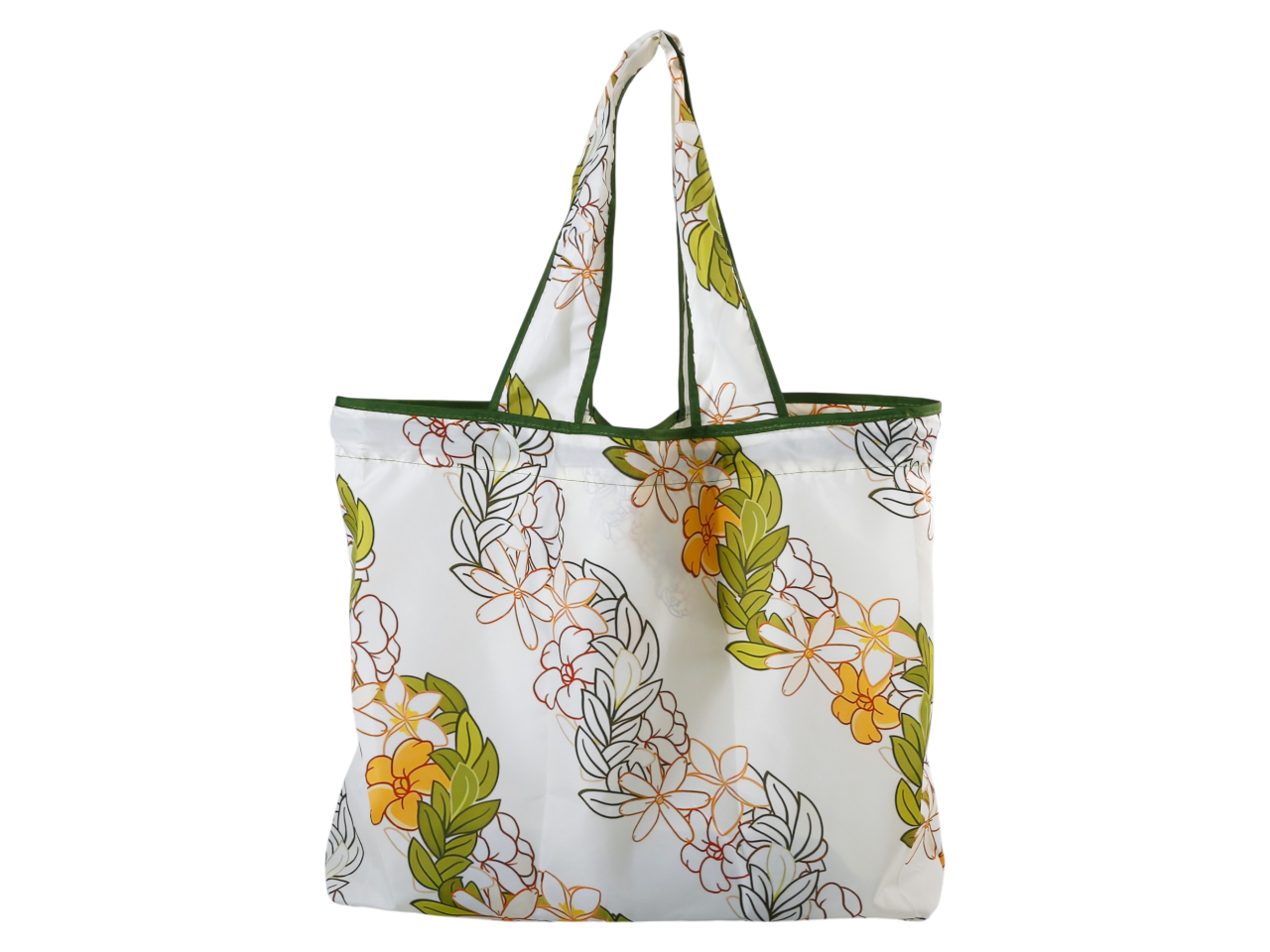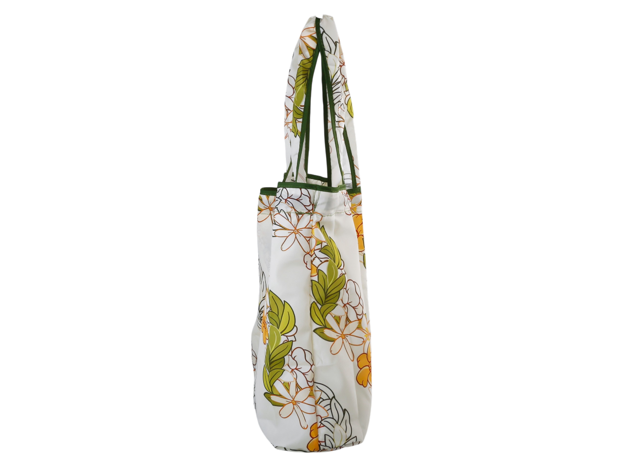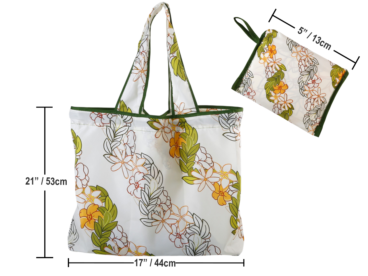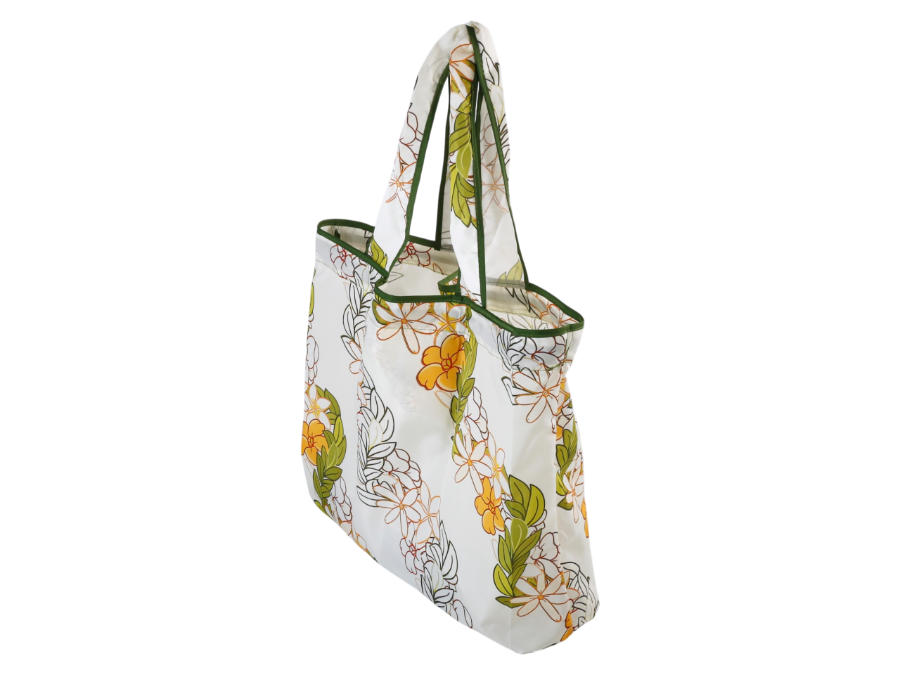 Yellow & Green Pikake White Background Print Reusable Bag 53x44cm-Foldable Into Pouch, MOQ-6