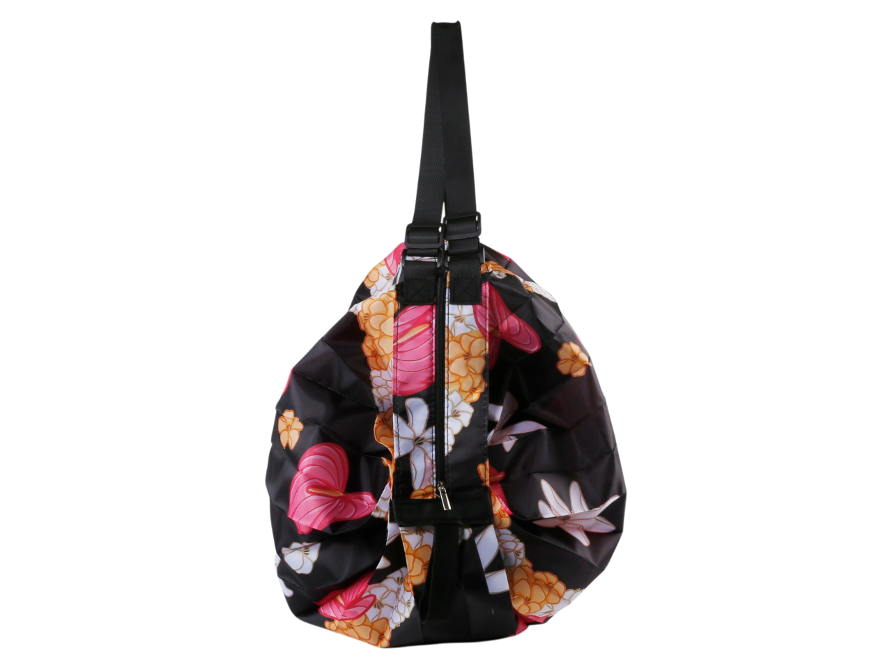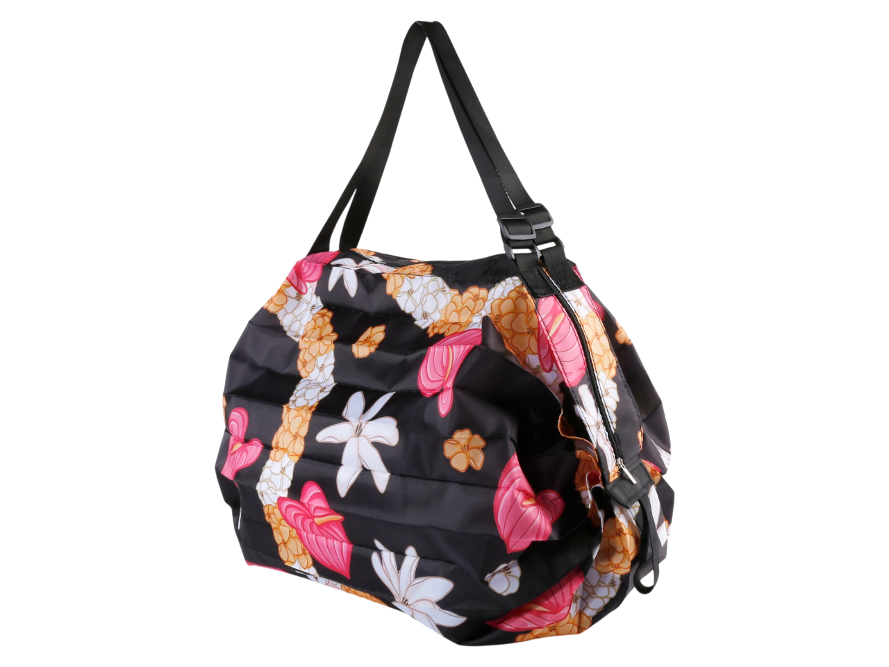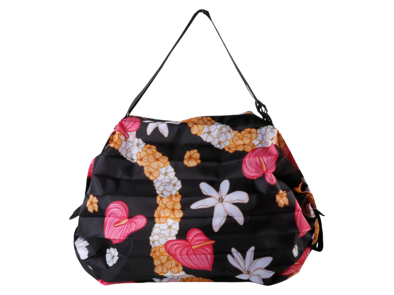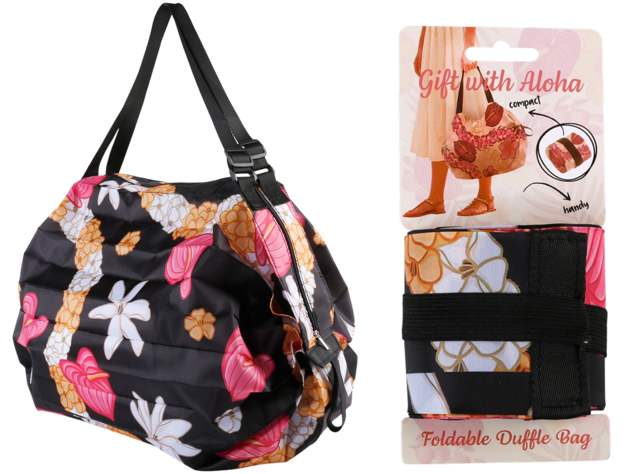 Yellow & White Pikake Black Background Print Foldable Duffle Bag 50x70cm, MOQ-6