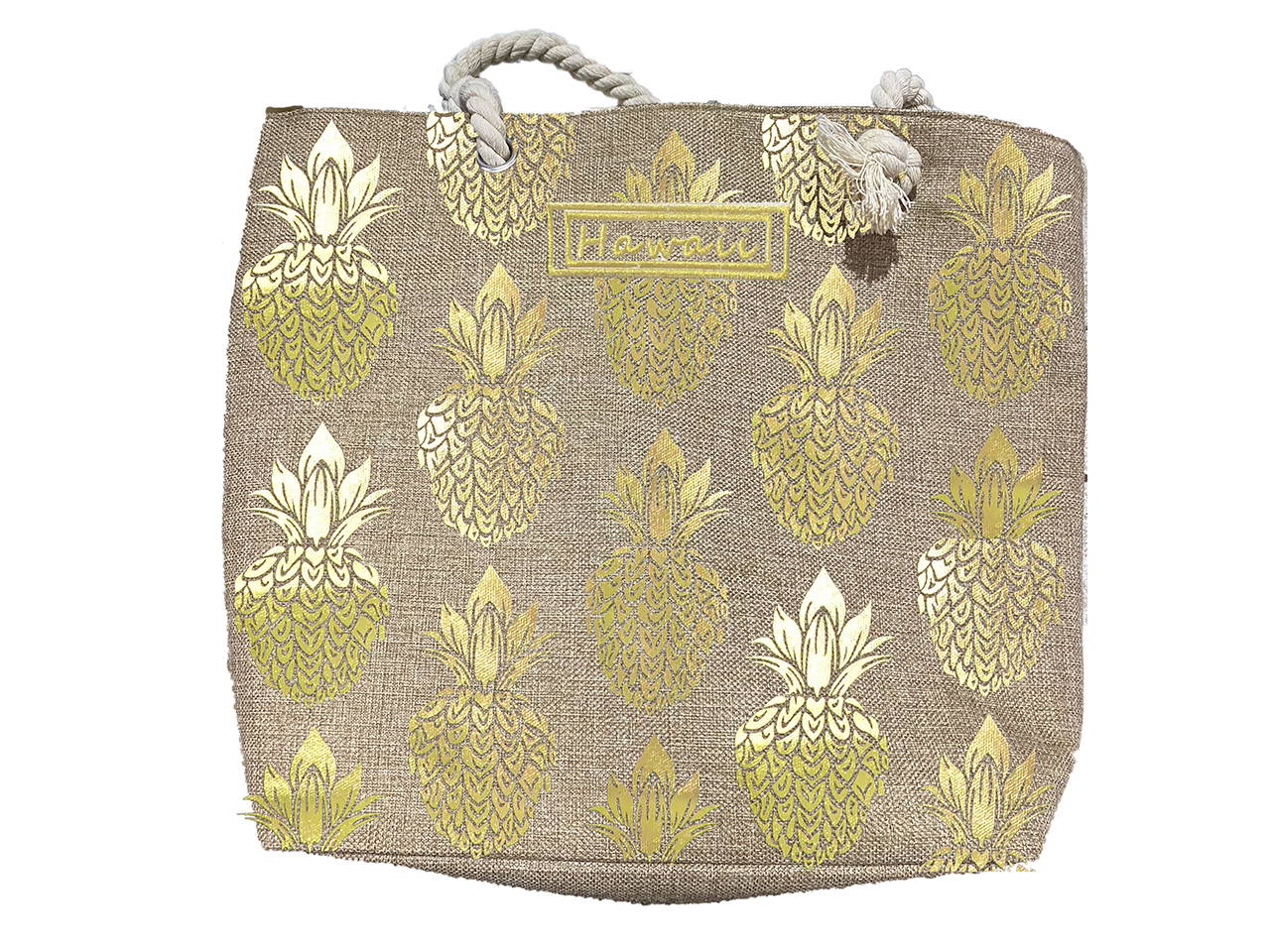 Gold Pineapple On Hemp Bag w/Zipper 17x12x4″ 25/box, MOQ-4