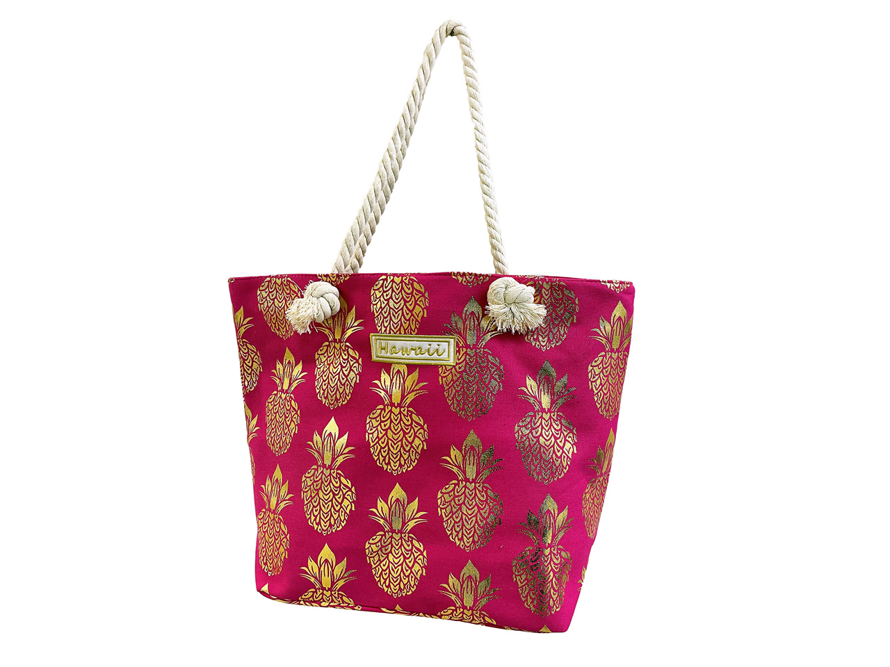 Gold Pineapple On Hot Pink Bag w/Zipper 17x12x4″ 25/box, MOQ-4