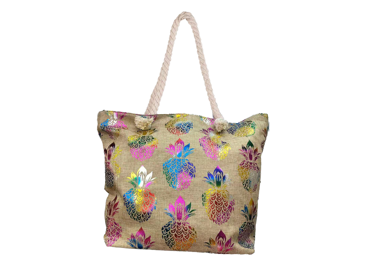 Rainbow Pineapple On Hemp Bag w/Zipper 17x12x4″ 25/box, MOQ-4