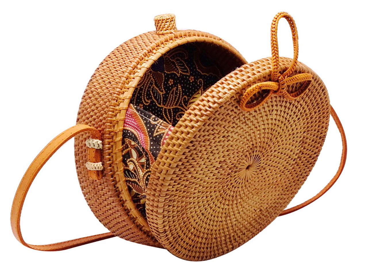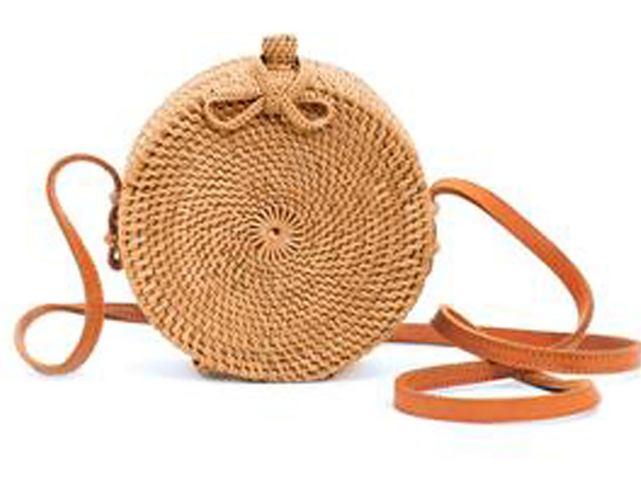 Handwoven Natural Round Rattan Straw Handbag Purse Crossbody Bag