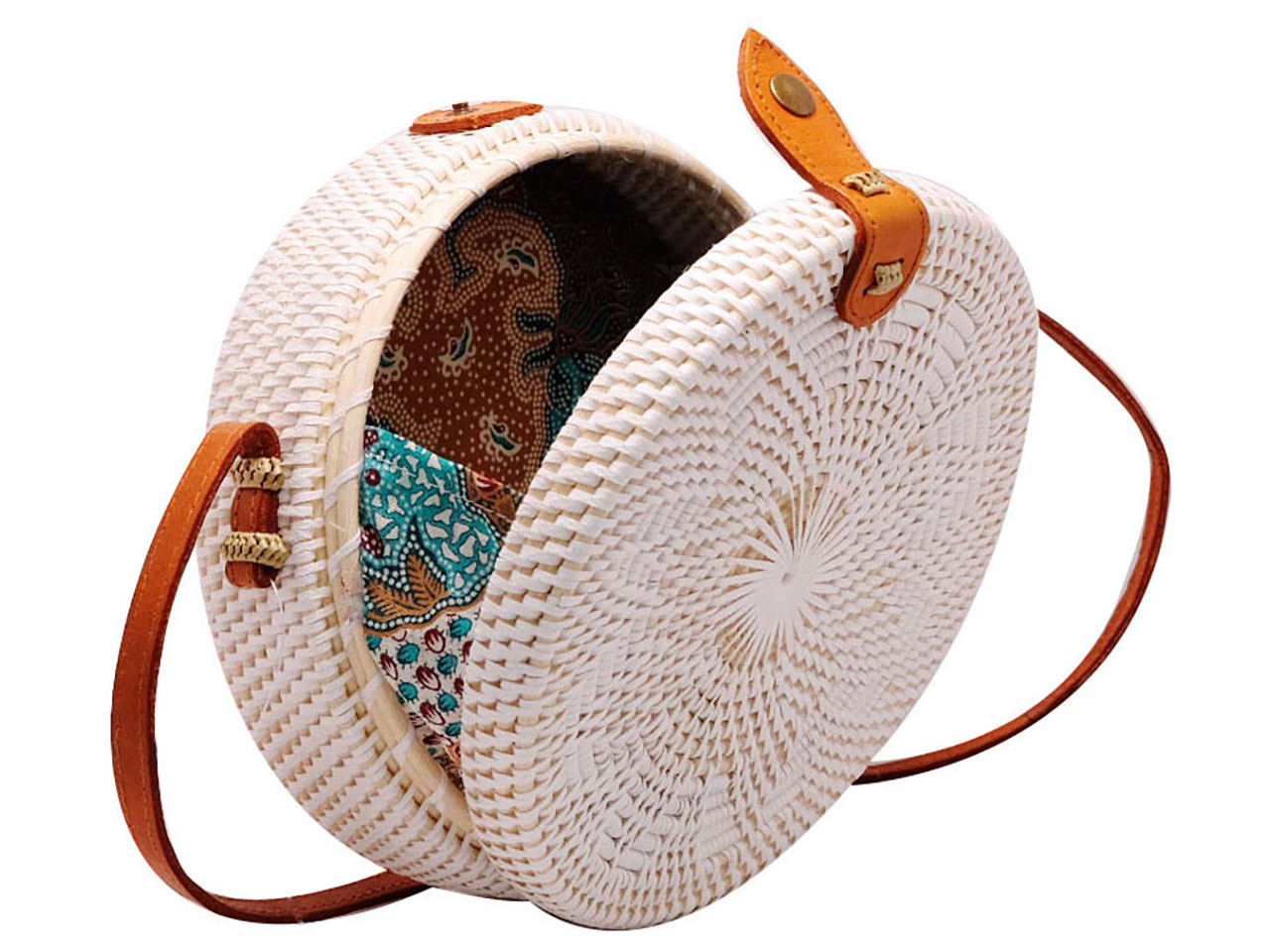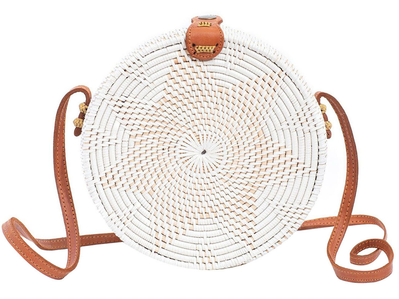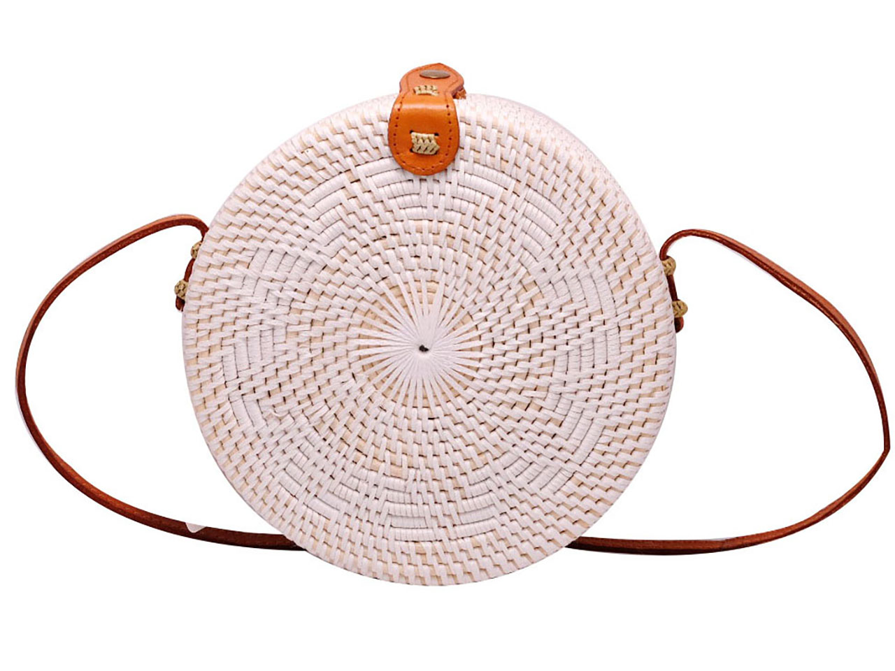 Handwoven White Round Rattan Straw Handbag Purse Crossbody Bag