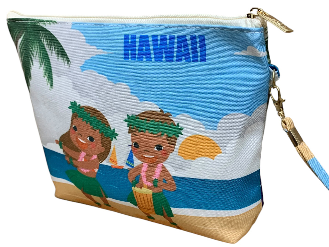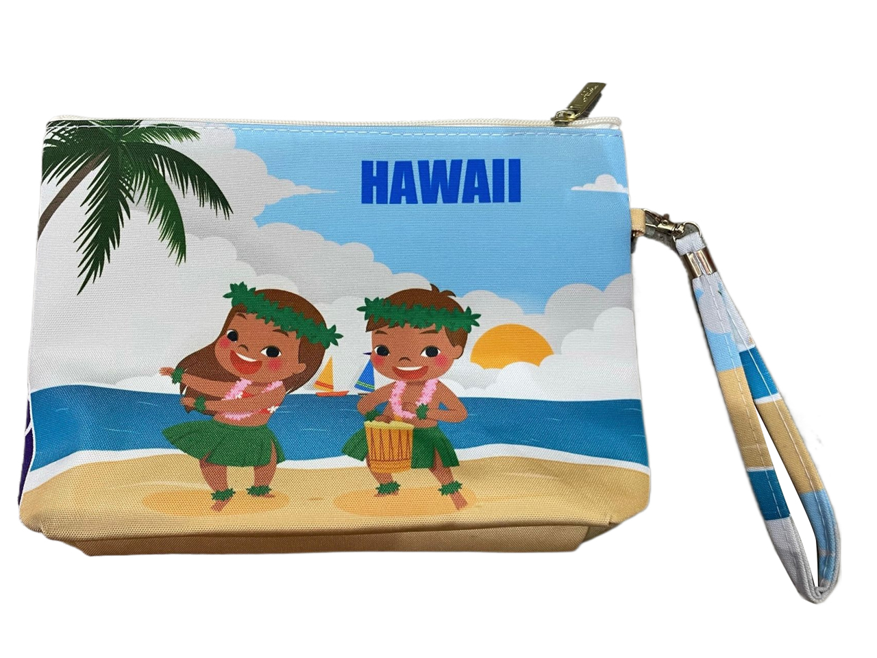 “Hawaii” Hula Dancer Zipper Wristlet w/ Strap 10.5×7.5″, MOQ-6