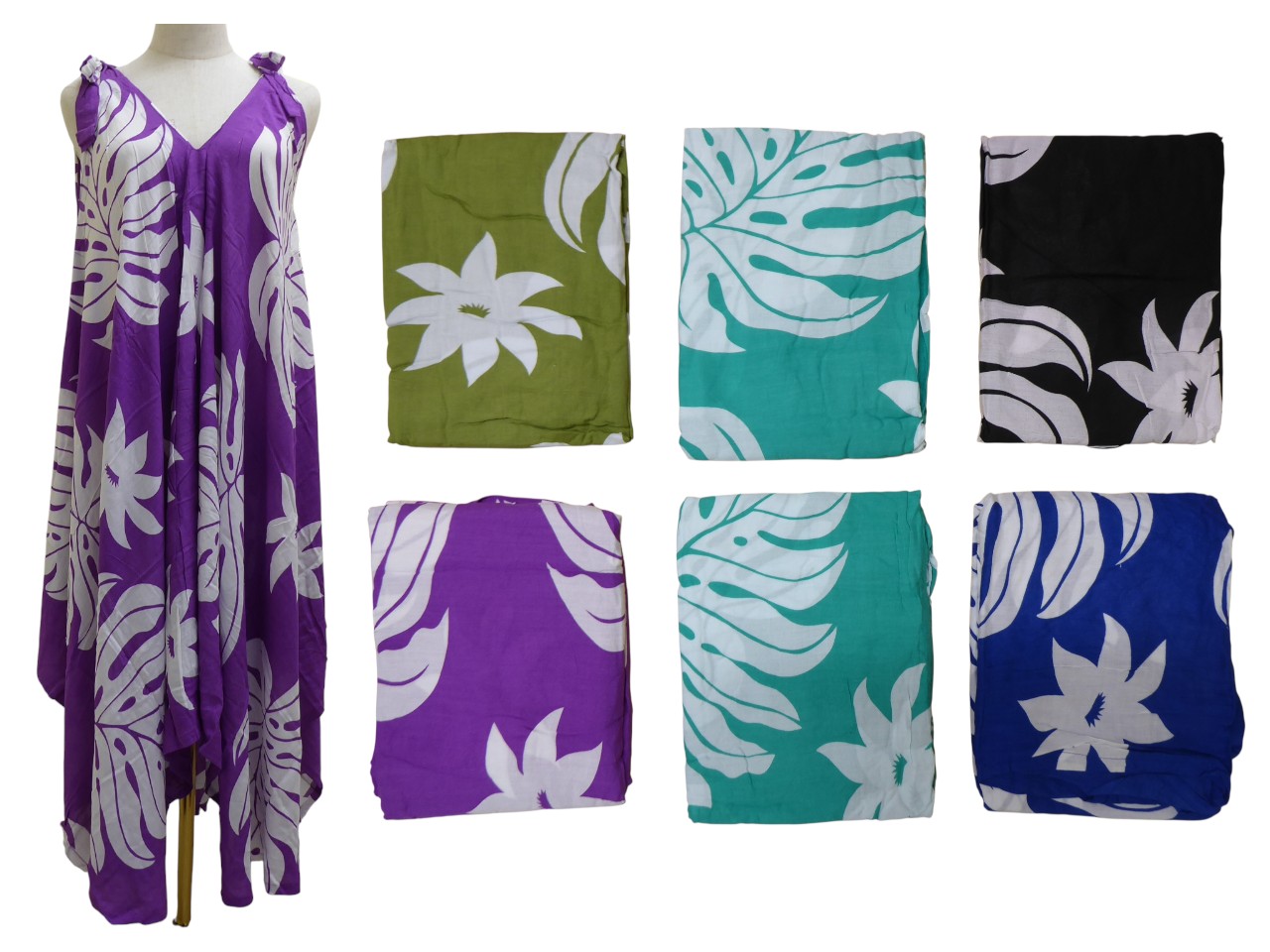 One size fits all monstera and palm leaves print light weight dress, assorted color