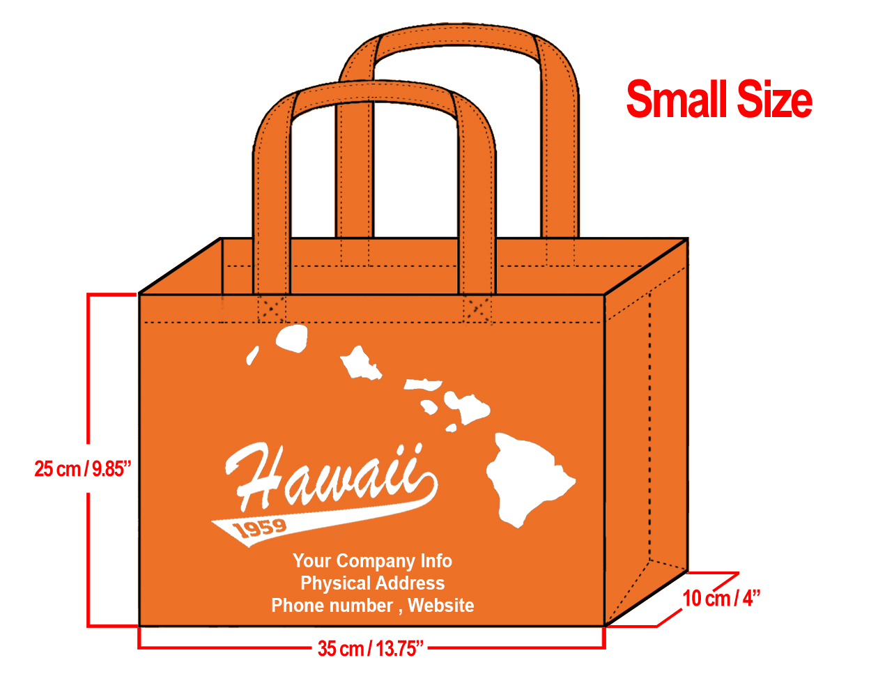 SMALL Orange-25x35x10cm Hawaii Island Design & Your Info In Whit