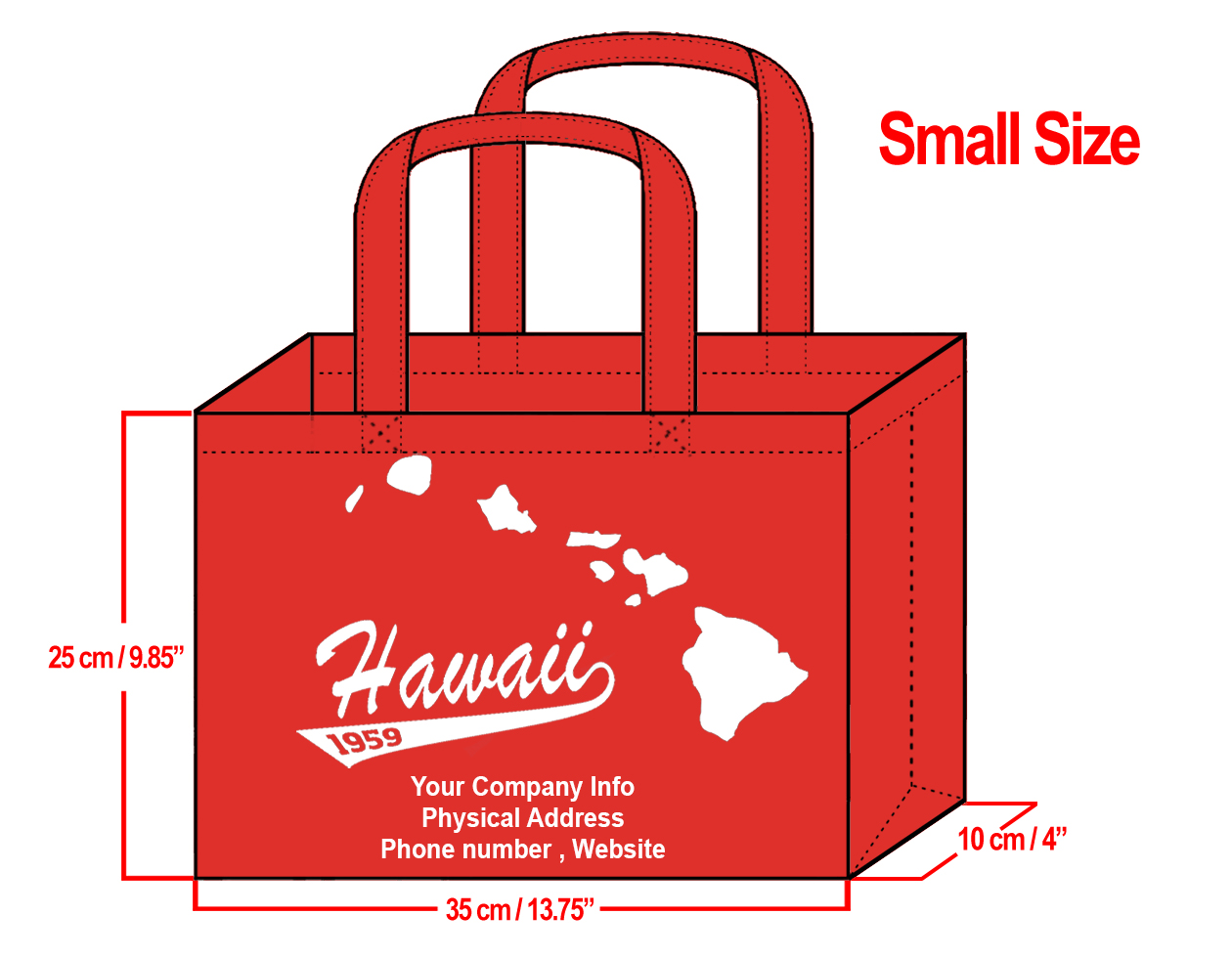 SMALL Red-25x35x10cm Hawaii Island Design & Your Info In White