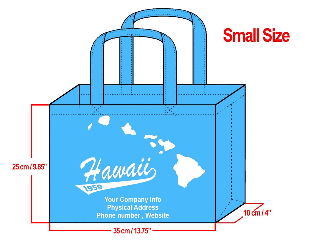 SMALL Teal-25x35x10cm Hawaii Island Design & Your Info In White