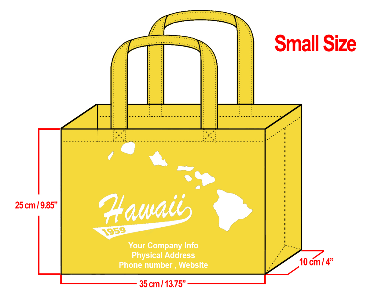 SMALL Yellow-25x35x10cm Hawaii Island Design & Your Info In Whit