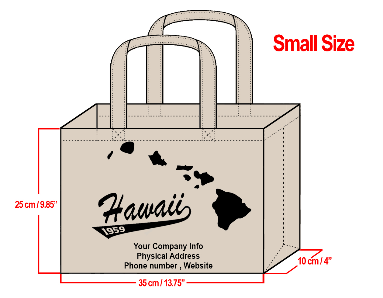 SMALL Cream-25x35x10cm Hawaii Island Design & Your Info In Black