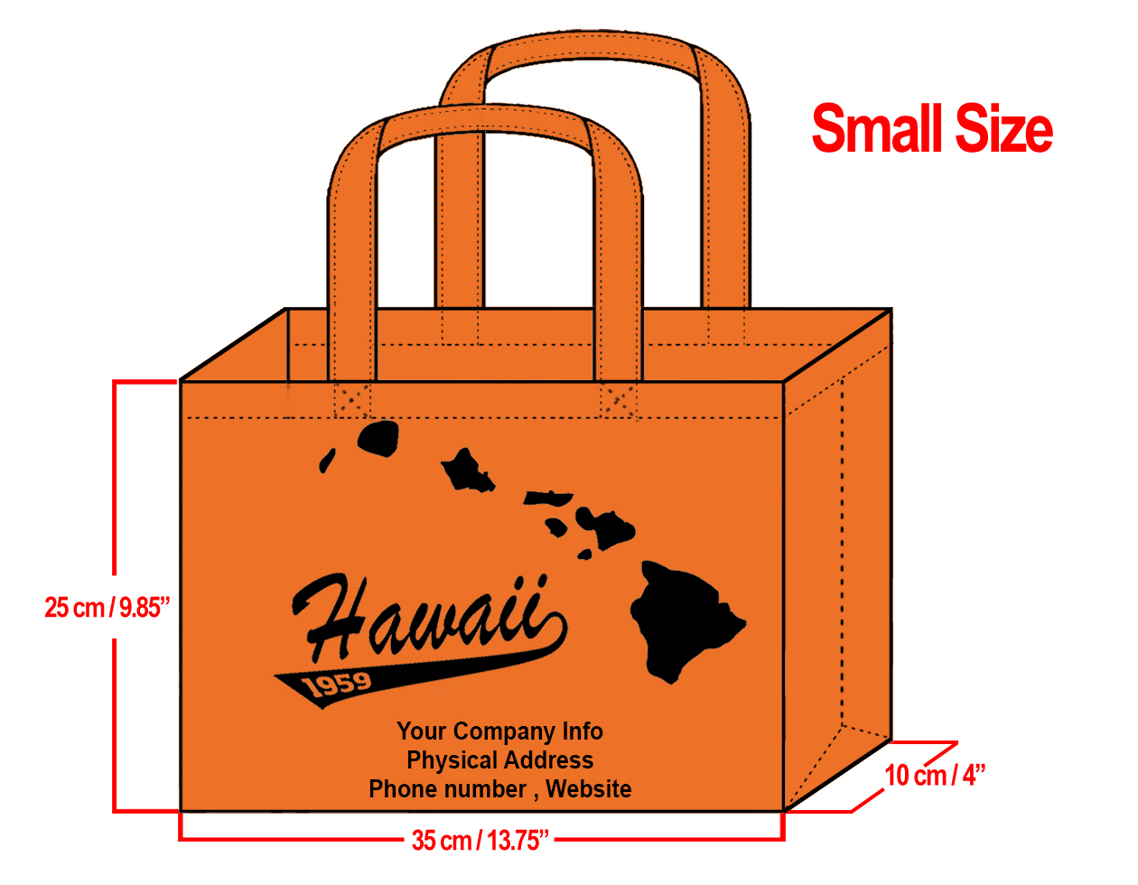 SMALL Orange-25x35x10cm Hawaii Island Design & Your Info In Blac