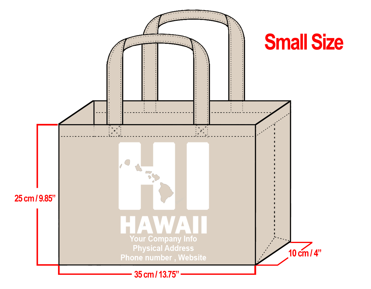 SMALL Cream-25x35x10cm HI Hawaii Island Design & Your Info In White