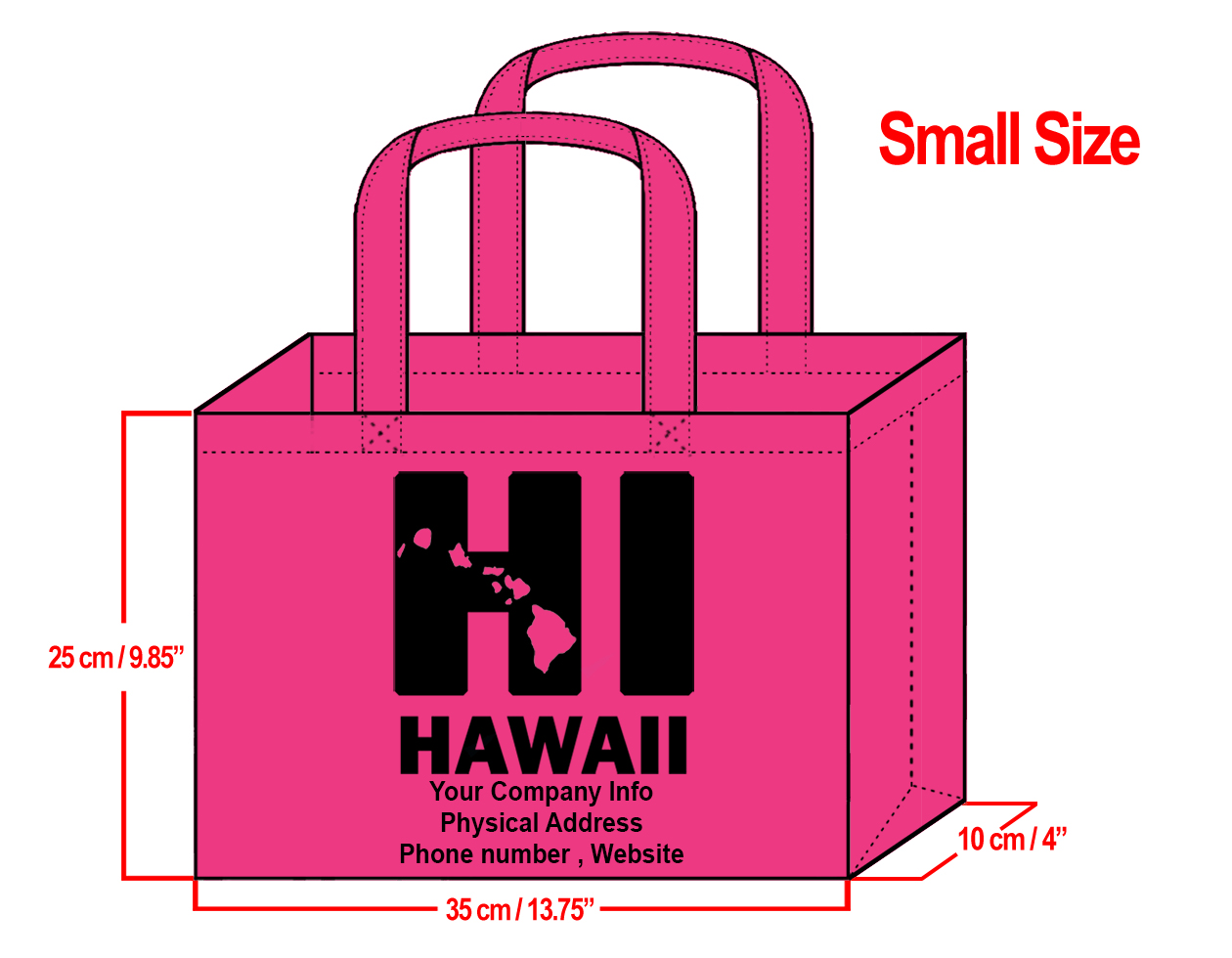 SMALL Fuchsia-25x35x10cm HI Hawaii Island Design & Your Info In Black