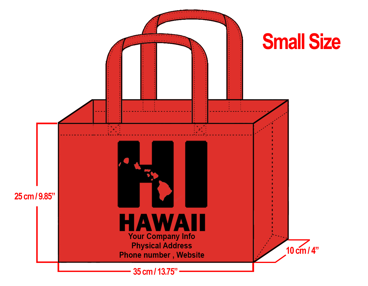 SMALL Red-25x35x10cm HI Hawaii Island Design & Your Info In Blac