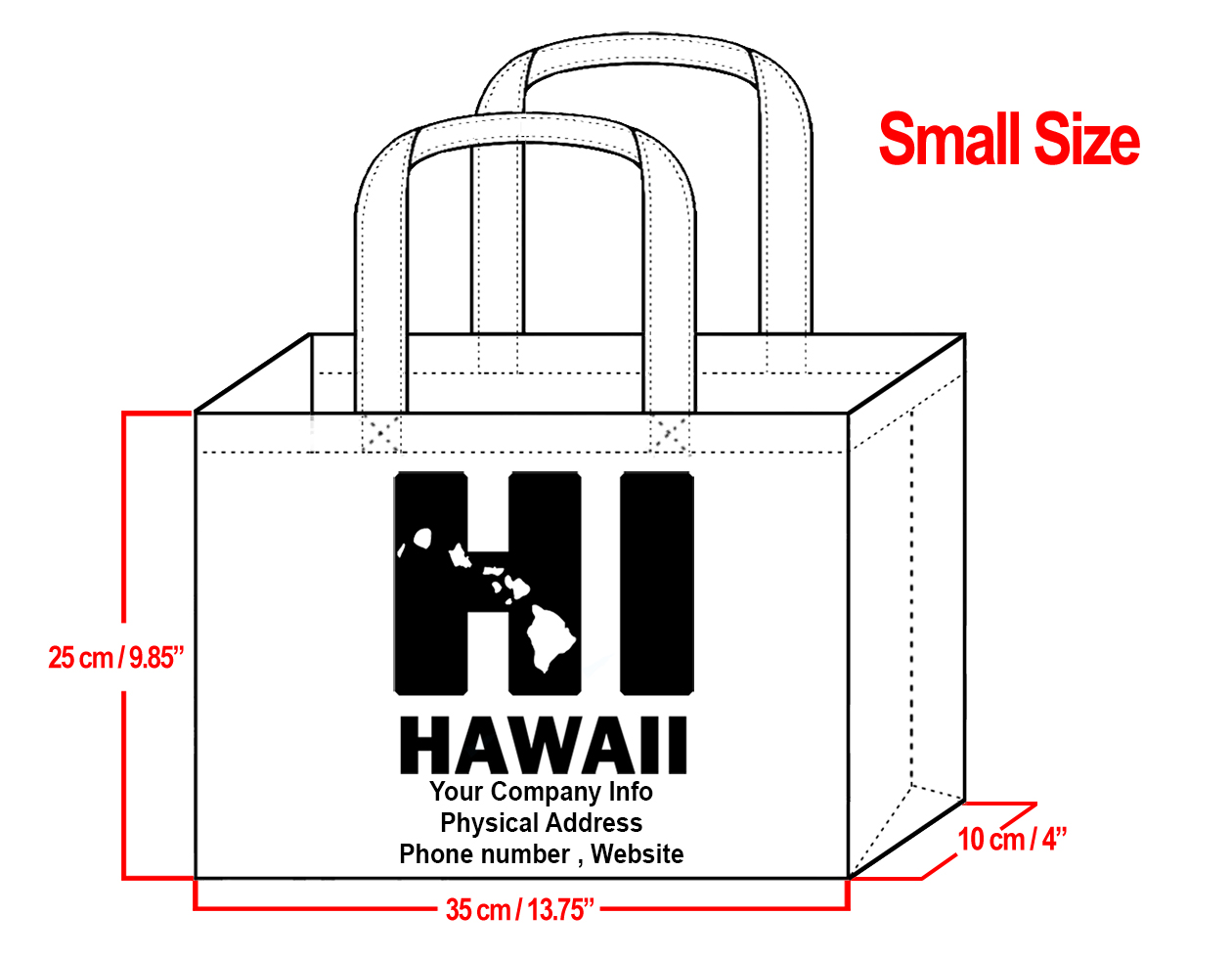 SMALL White-25x35x10cm HI Hawaii Island Design & Your Info In Bl