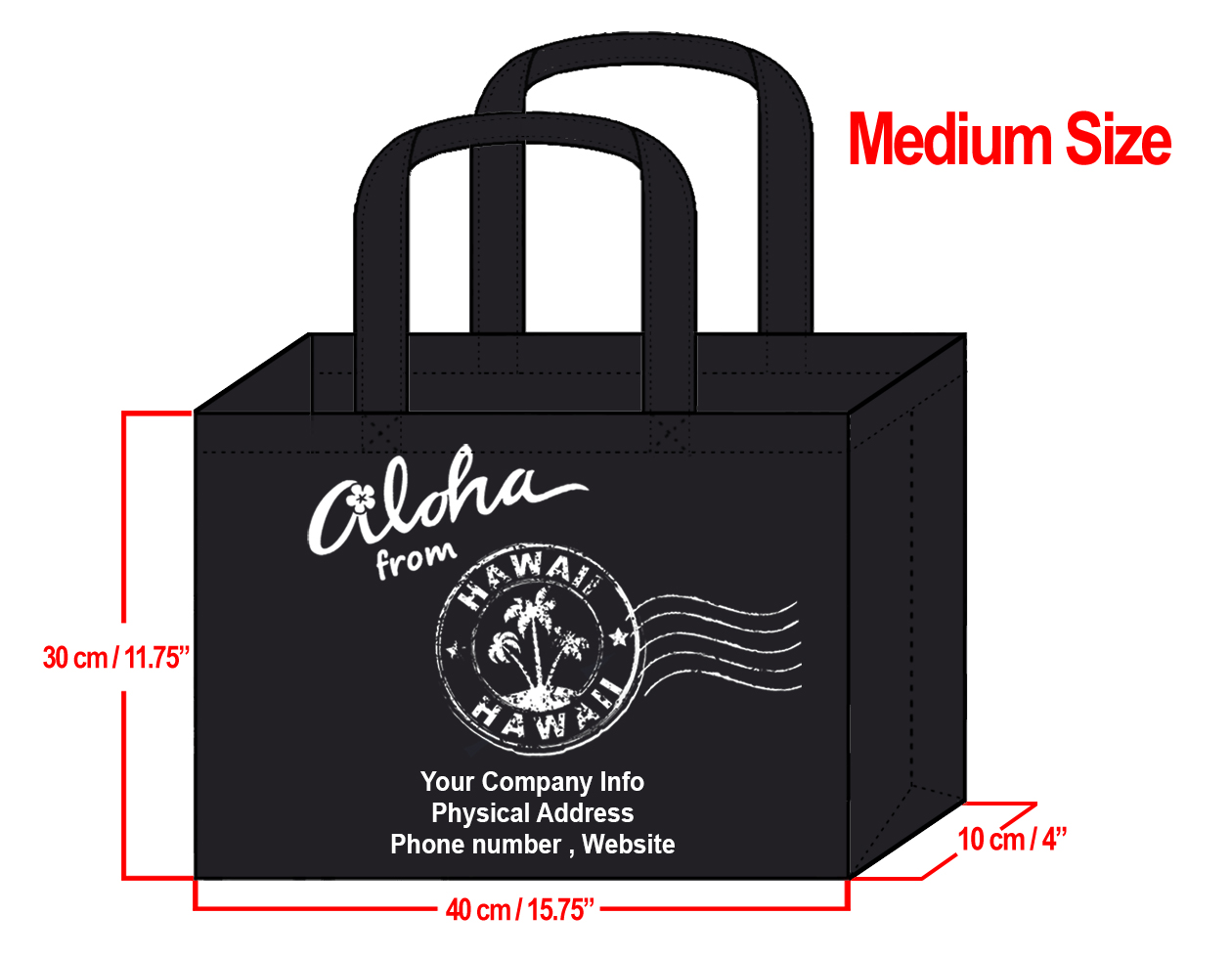 MEDIUM Black-30x40x10cm Aloha From HI Design & Your Info In Whit