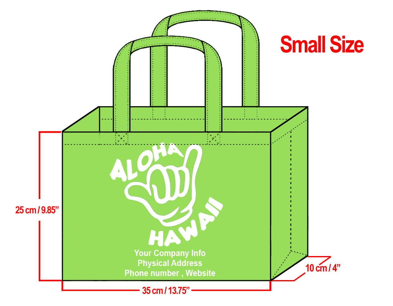 SMALL Lime-25x35x10cm Shaka Design & Your Info In White