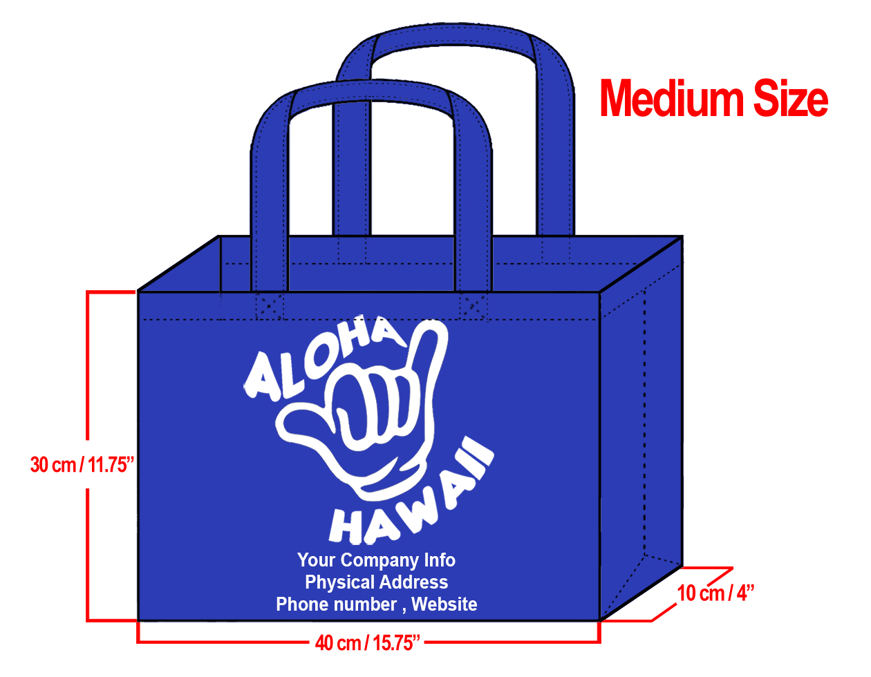 MEDIUM Navy-30x40x10cm Shaka Design & Your Info In White