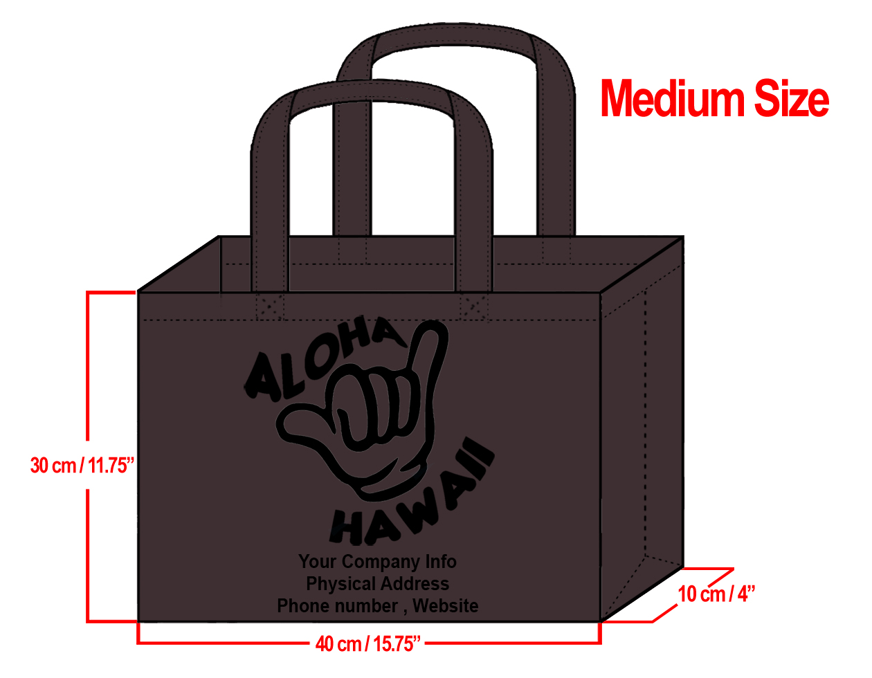 MEDIUM Brown-30x40x10cm Shaka Design & Your Info In Black