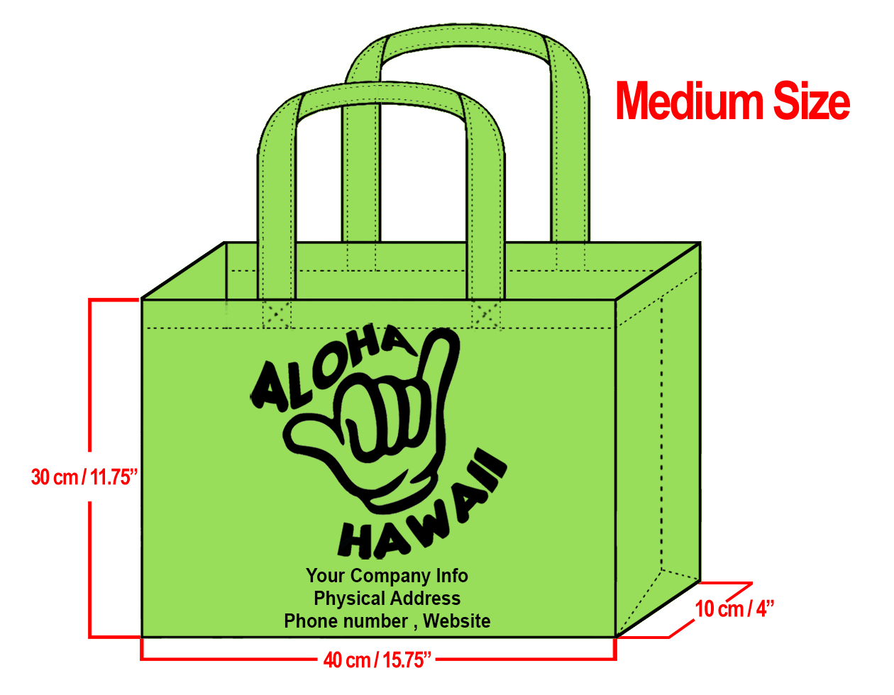 MEDIUM Lime-30x40x10cm Shaka Design & Your Info In Black