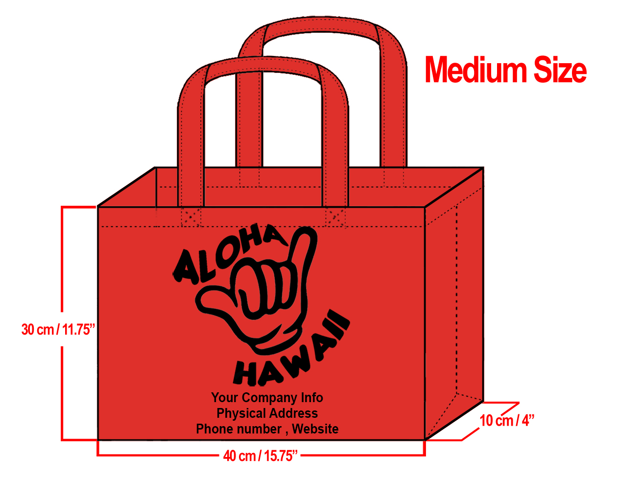 MEDIUM Red-30x40x10cm Shaka Design & Your Info In Black