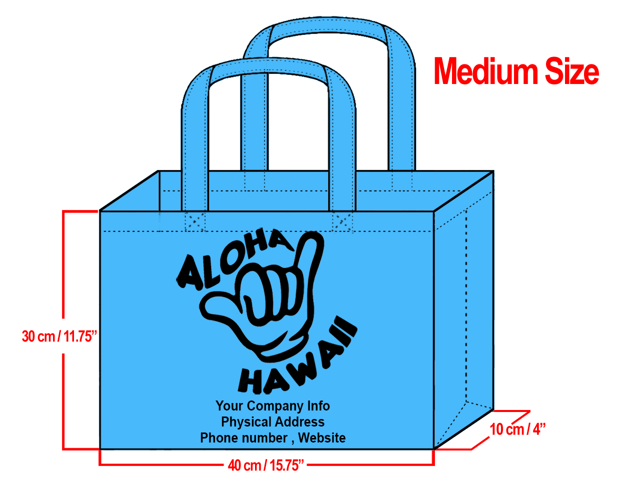 MEDIUM Teal-30x40x10cm Shaka Design & Your Info In Black