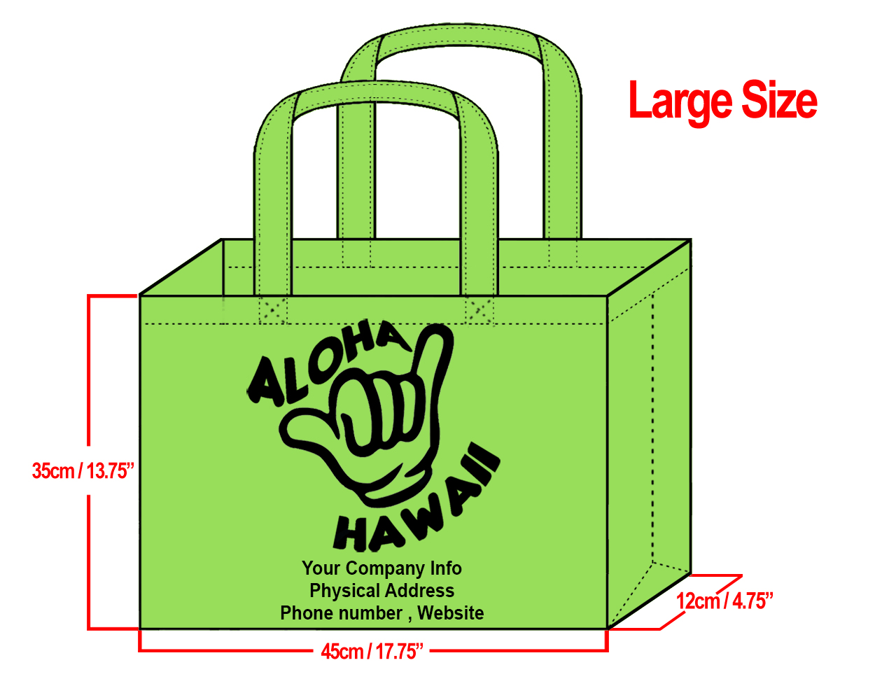 LARGE Lime-35x45x12cm Shaka Design & Your Info In Black
