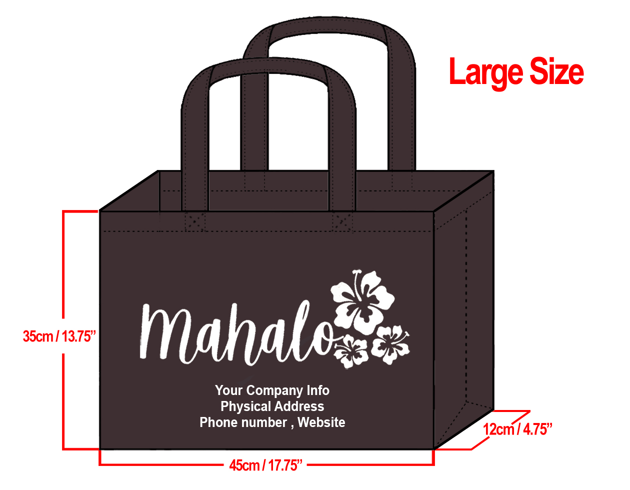 LARGE Brown-35x45x12cm Mahalo Hibiscus Design & Your Info In Whi