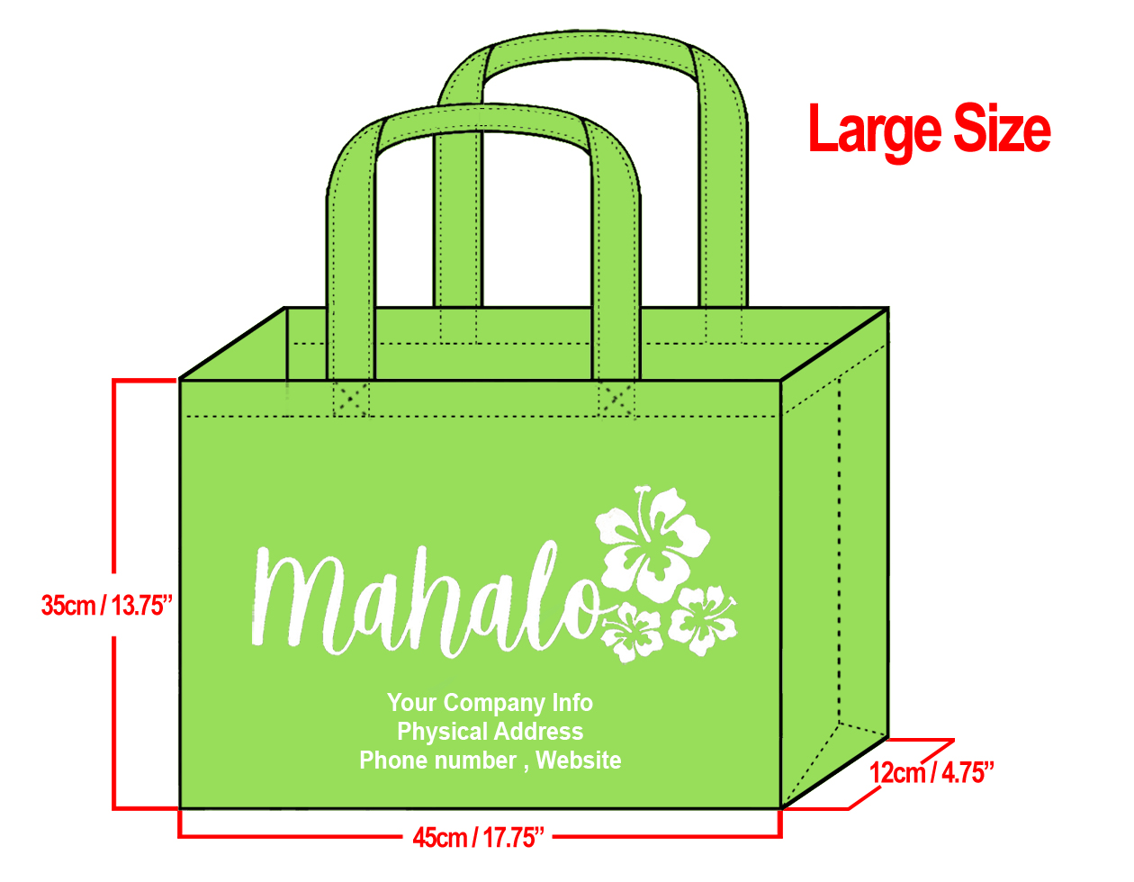 LARGE Lime-35x45x12cm Mahalo Hibiscus Design & Your Info In Whit