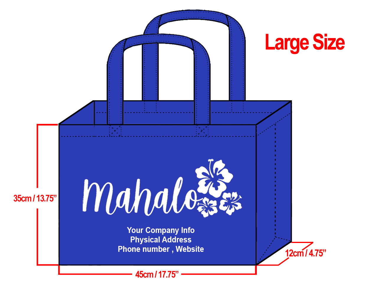 LARGE Navy-35x45x12cm Mahalo Hibiscus Design & Your Info In Whit